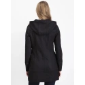 Damski płaszcz zimowy z kapturem. Przyjazne dla środowiska futro dekoracyjne na wysokości klatki piersiowej. Płaszcz zapinany jest na szpilki. Posiada dwie zewnętrzne kieszenie. Dzięki niezwykle miękkiej i wytrzymałej tkaninie wszystkie panie będą się w niej czuły świetnie, więc naprawdę warto ją mieć. Jest dostępny w kolorze czarnym.