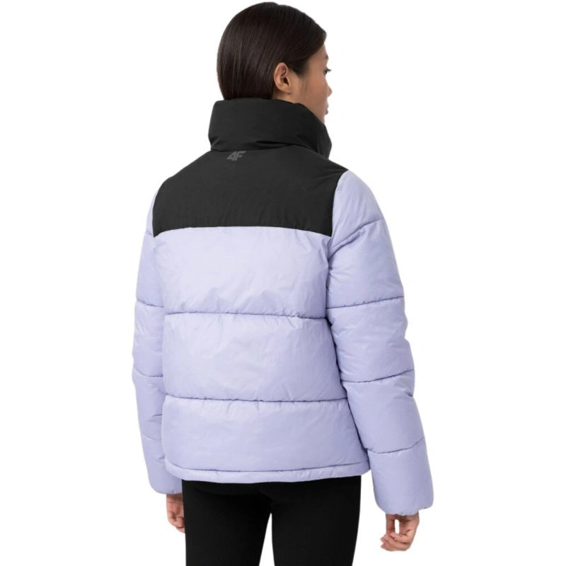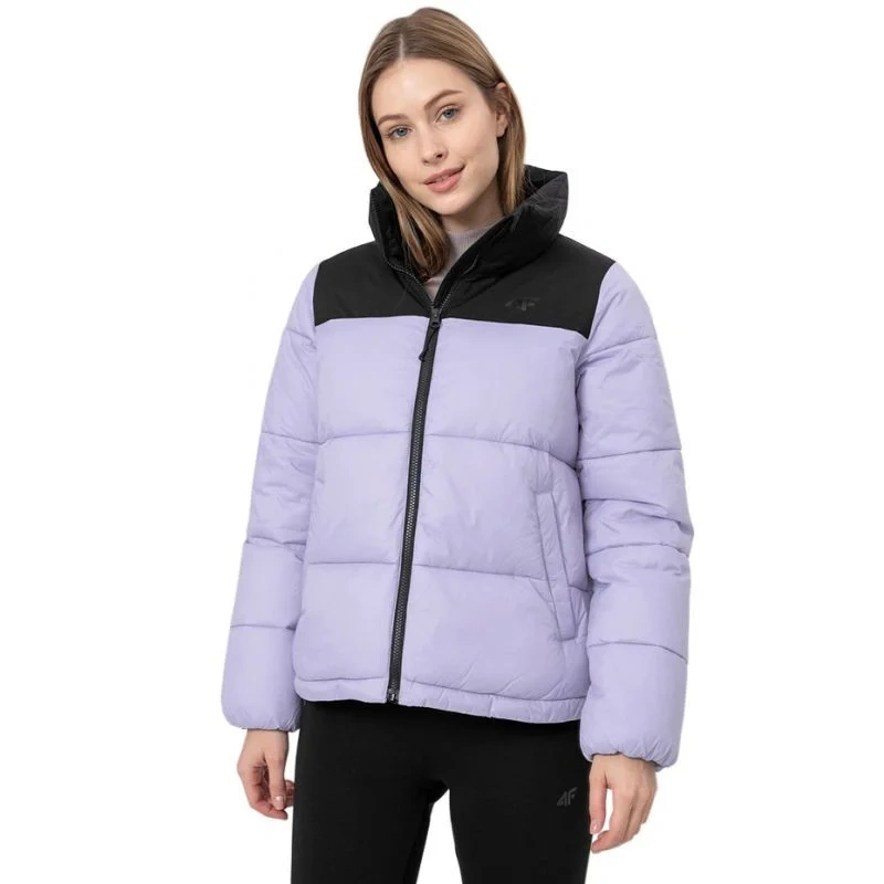 - Kurtka dla kobiet 4F posiada wypełnienie z puchu syntetycznego, dzięki czemu zapewnia optymalny komfort cieplny w chłodniejsze dni.