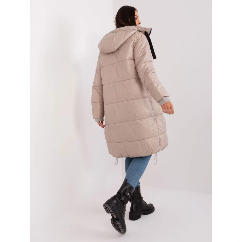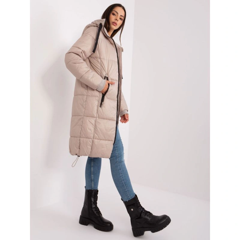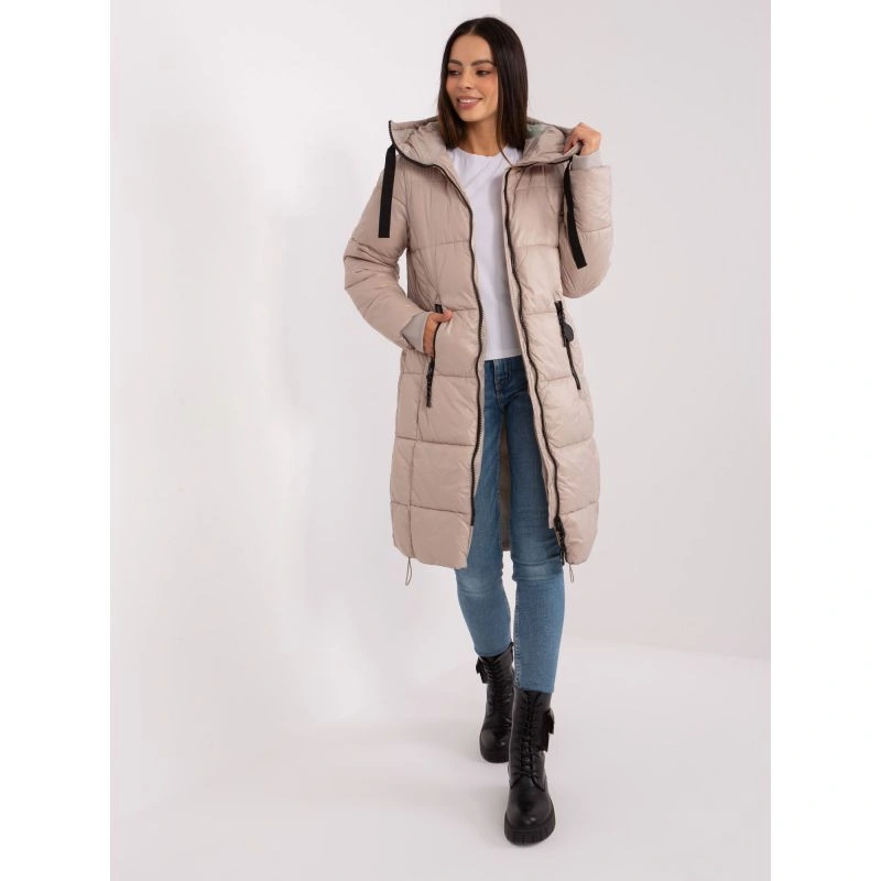 Kurtka damska zimowa beżowa pikowana SUBLEVEL długa do kolan (D50048X44518B3)