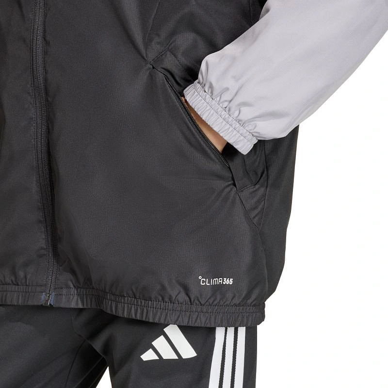 Kurtka dla dzieci adidas Tiro 26 Competition All Weather czarna KB0156 Kurtka dla dzieci adidas Tiro sprawdzi się podczas treningów. Zamek na całej długości pozwala na szybkie ubieranie. Patka chroniąca podbródek. Kaptur bez regulacji. Hydrofobowe właściwości. Wiatroszczelna. Dane techniczne:· Materiał: 100% poliester (pochodzący z recyklingu)· Standardowy krój· Suwak na całej długości· Technologia CLIMA365 · Przednie kieszenie na suwaki· Kaptur· Elastyczne mankiety i dół