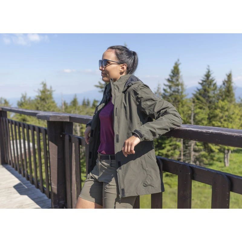 Właściwości: Damska kurtka Hi-Tec. Wodoodporność 10 000 mm H²O Oddychalność na poziomie 10 000