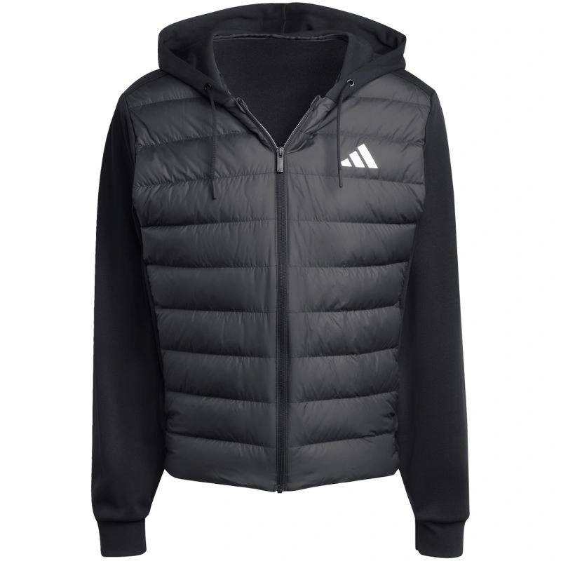 Kurtka męska adidas Essentials Climawarm Hybrid Down Hooded czarna KA5251 Męska kurtka adidas sprawdzi się w okresie przejściowym. Fason o regularnym, częściowo pikowanym kroju. Materiał Soft Shell z tyłu, na rękawach i kapturze. Suwak na całej długości. Boczne kieszenie. Nieopinany, regulowany kaptur. Ten model jest wykonany z serii materiałów pochodzących z recyklingu i zawiera 100% materiałów z odzysku, stanowiąc tylko jedno proponowanych rozwiązań, które mogą pomóc położyć kres plastikowym odpadom. Dane techniczne:· Materiał: 100% poliester pochodzący z recyklingu · Wypełnienie: 100% poliester (puch syntetyczny)