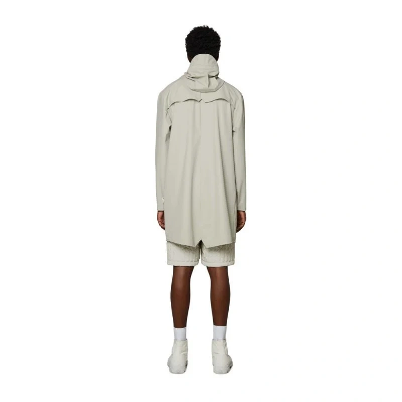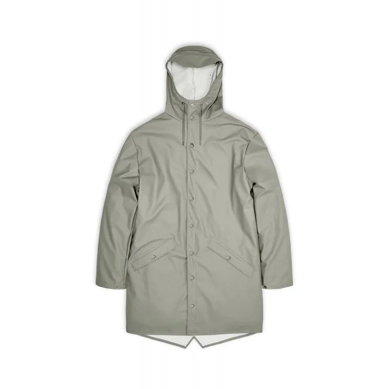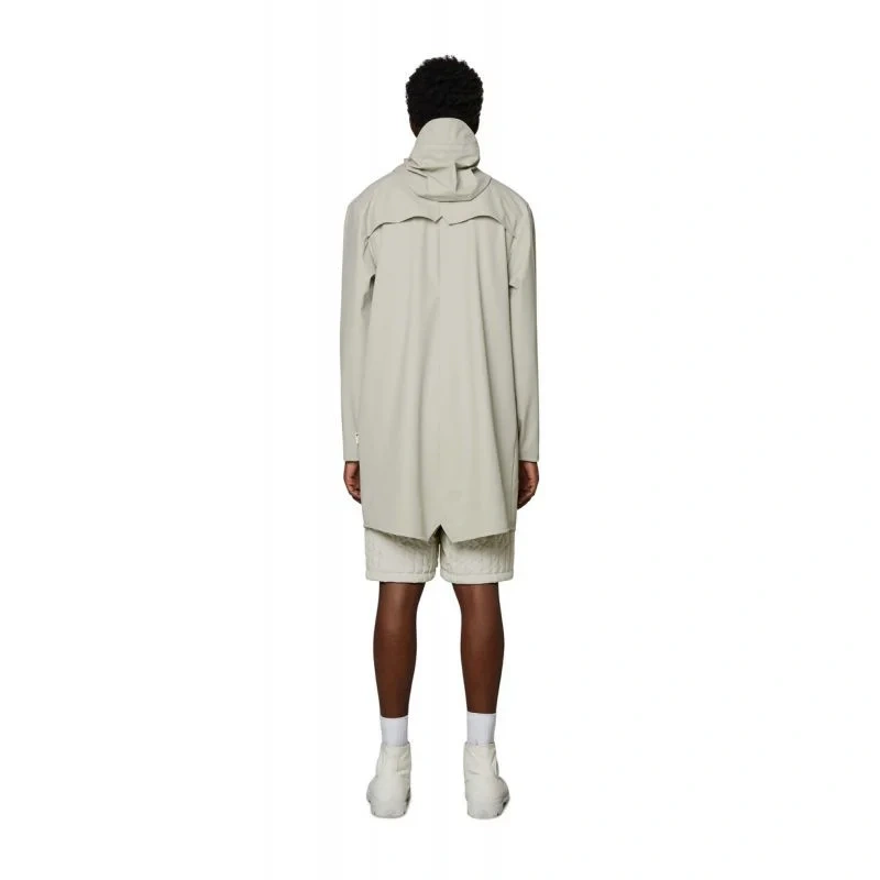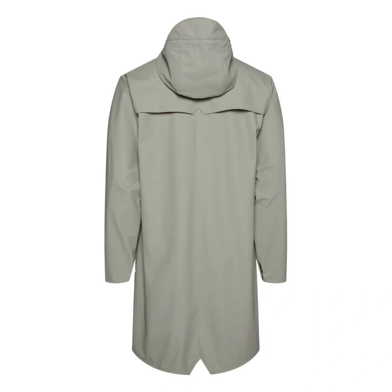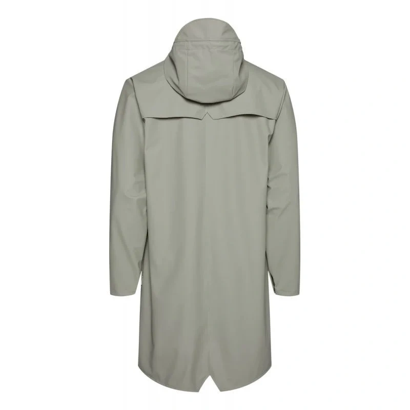 Long Jacket to dłuższa wersja klasycznego projektu Rain, Jacket. Ta zawsze współczesna kurtka przeciwdeszczowa unisex zapewnia wysoką funkcjonalność w minimalistycznej sylwetce. Cechy obejmują podwójnie zgrzewane ukośne kieszenie z klapami, regulowane mankiety i lamówkę typu fishtail. Całości dopełniają zatrzaski, szlufki pod pachami i tylny karczek z ukrytymi rozcięciami.Ta wodoodporna kurtka jest uszyta z charakterystycznej dla Rains tkaniny PU i ma szwy zgrzewane ultradźwiękowo. Wykończenie jest lekkie, miękkie w dotyku i elegancko się układa.