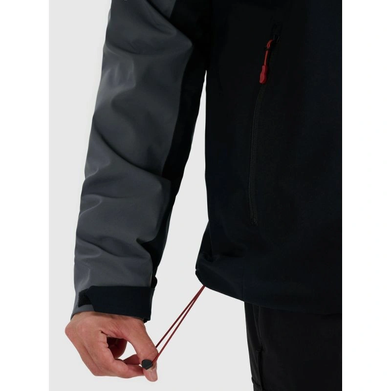 Hydrofobowa impregnacja zabezpiecza materiał przed wilgocią, a krytycznie podklejane szwy w kapturze i na ramionach ograniczają przenikanie wody w miejscach najbardziej narażonych na opady.