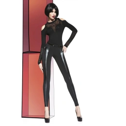 RUE PARIS Ciemne khaki legginsy z eko-skóry. Akcesoria: izolacja skład tkaniny: 90% bawełna, 10% ela