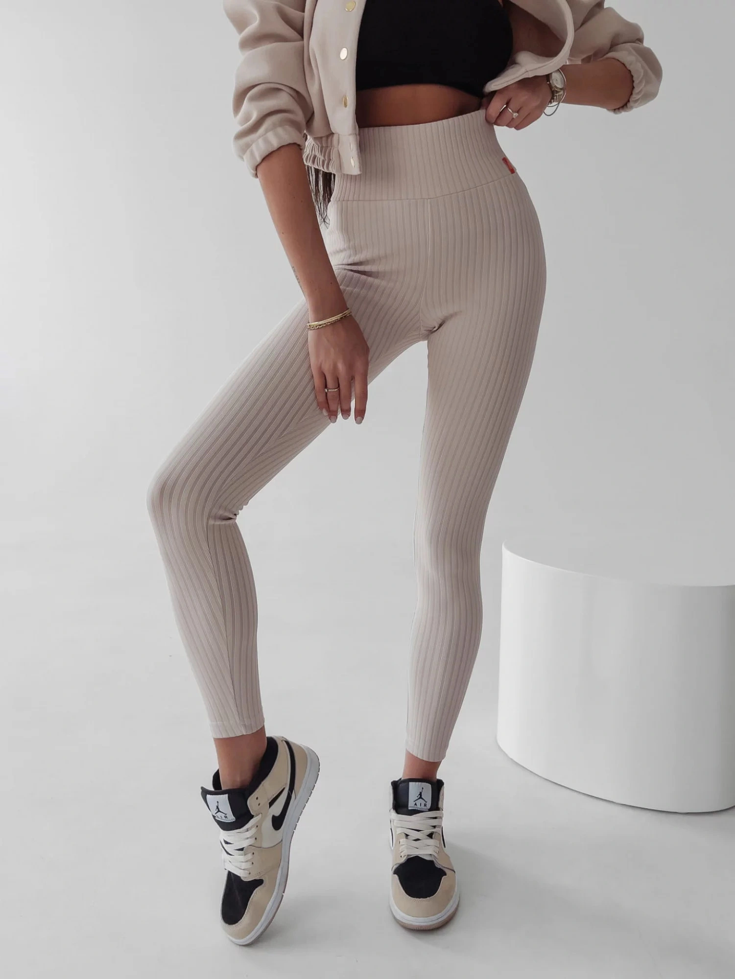 Legginsy Ola Voga to klasyczny model wykonany z elastycznego prążkowanego materiału