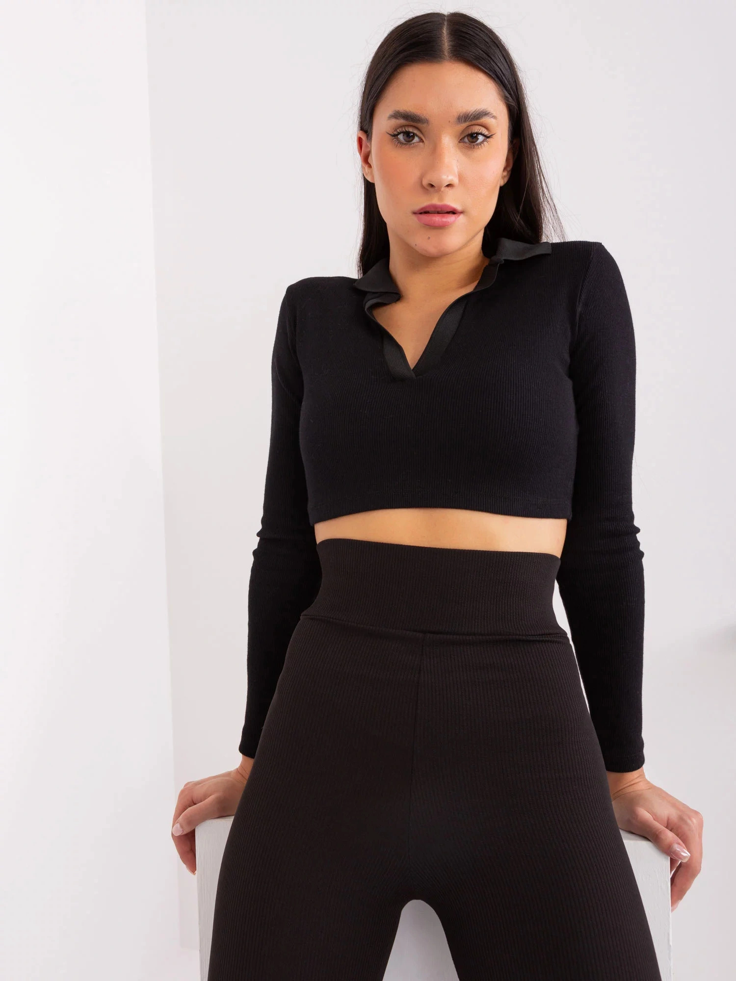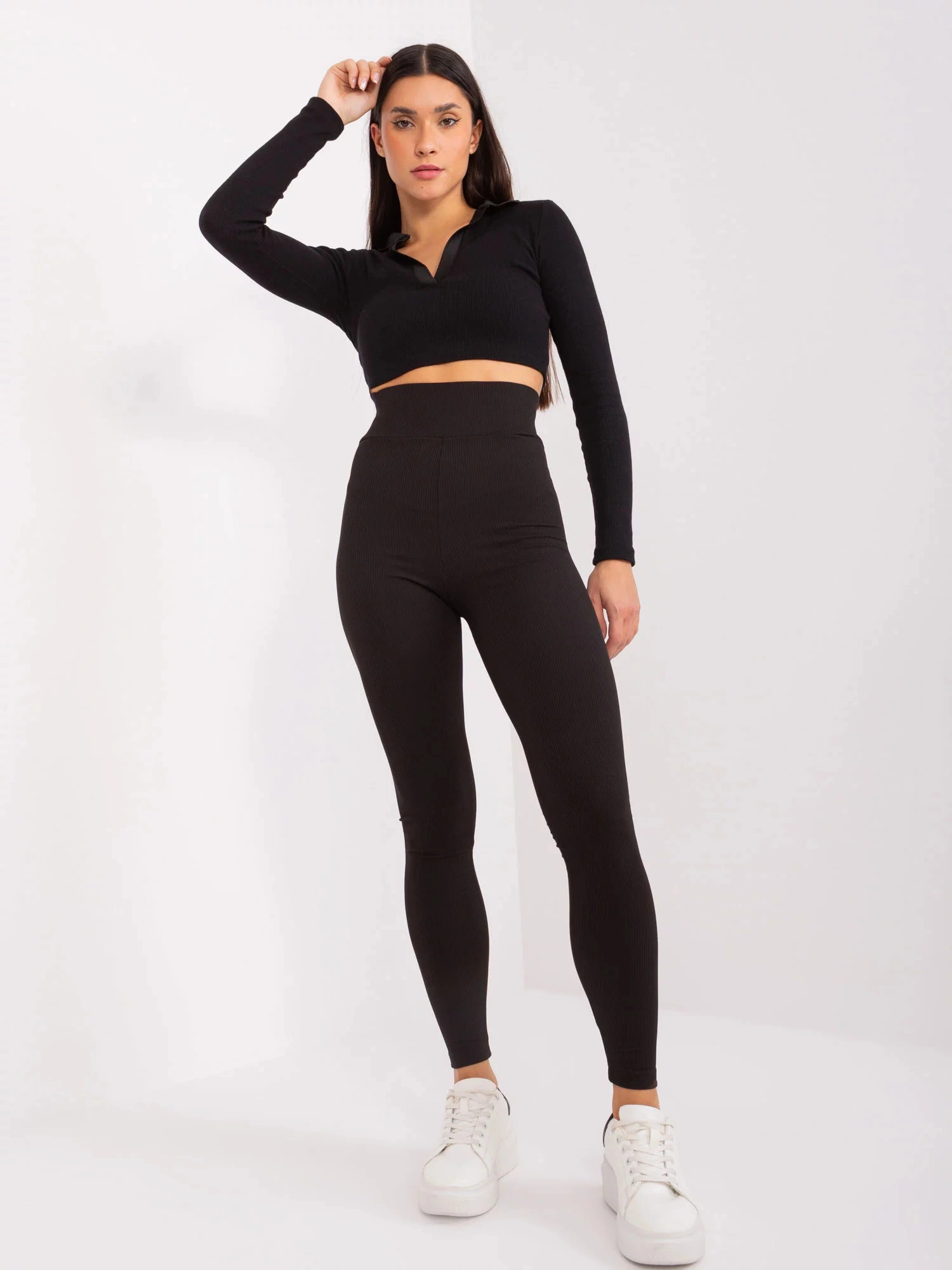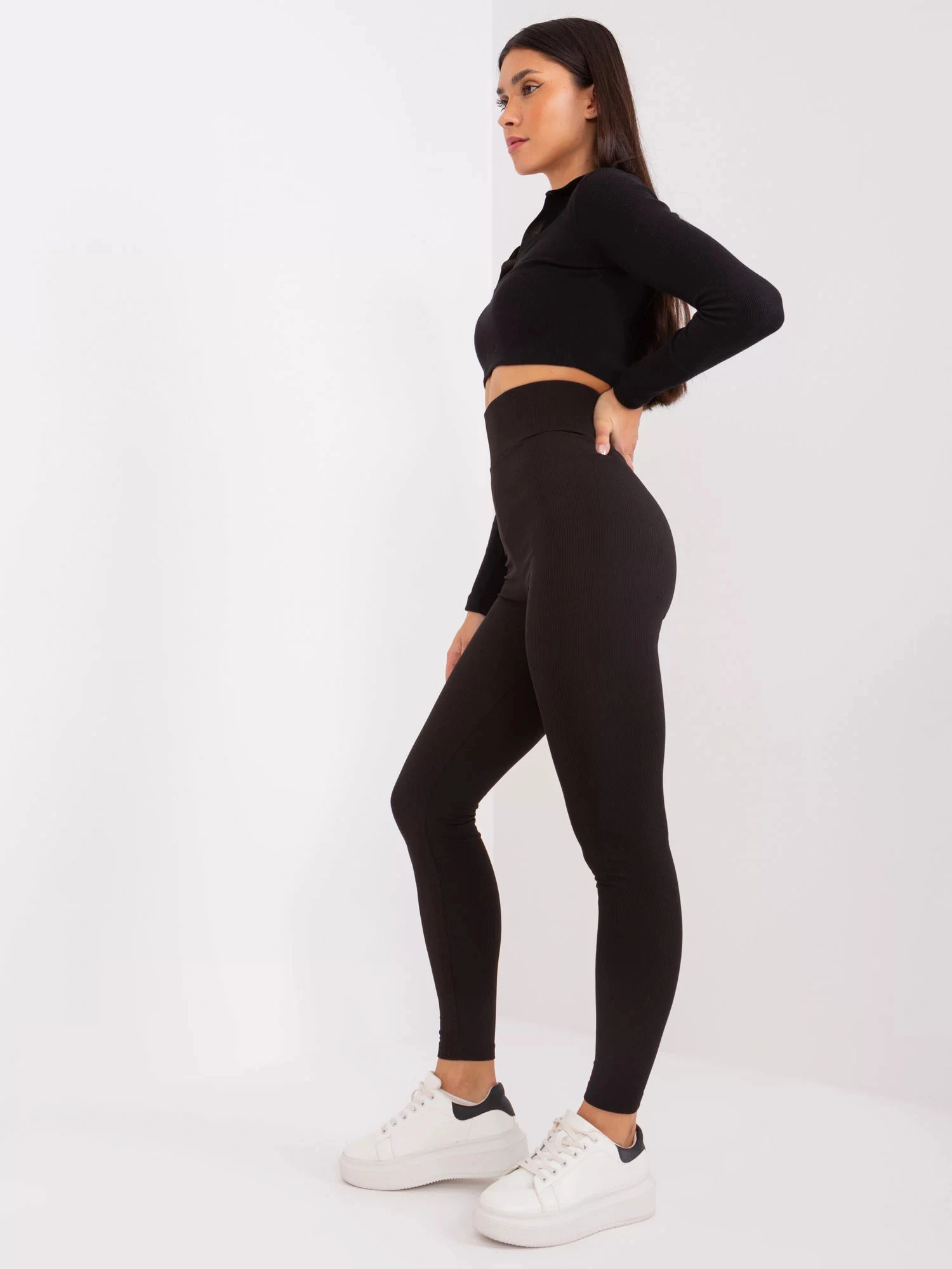 Czarne legginsy z wysokim stanem od RUE PARIS .