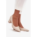 Dámské lodičky z ekologické kůže jsou elegantní volbou na každou příležitost. Vyrobené z hladkého, odolného materiálu vypadají stylově a nadčasově. Špičaté nosy zeštíhlují nohu a stabilní podpatek typu sloupek přidává několik centimetrů k výšce, přičemž zajišťuje pohodlí při nošení. Jedná se o univerzální model, který skvěle doplní jak kancelářské outfity, tak večerní sestavy. Ideální k šatům, sukním nebo elegantním kalhotám. Při výběru velikosti se řiďte tabulkou velikostí. Při výběru velikosti se řiďte tabulkou velikostí.