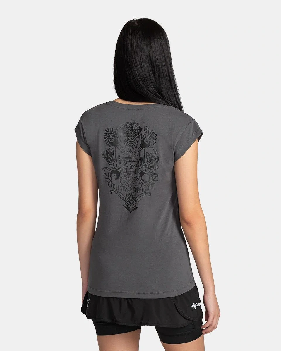 Bawełniana koszulka damska Kilpi LOS-W jest wykonana z elastycznej dzianiny bawełnianej o dopasowanym kroju, z krótkimi rękawami i okrągłym dekoltem. Przyzwoicie nadrukowany wzór nadaje się do noszenia na co dzień. T-shirt Kilpi LOS-W jest dostępny w dwóch kolorach.Modelka na zdjęciu: rozmiar 36, wzrost 170 cm, obwód klatki piersiowej 80 cm, obwód talii 64 cm, obwód bioder 85 cm.Skład materiału: