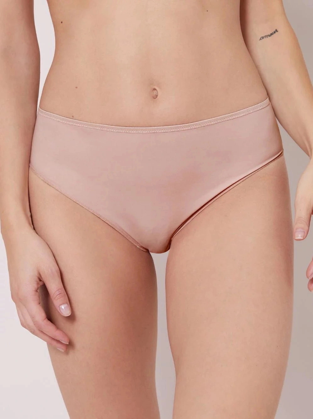 Dzianinowe majtki z wysokim stanem. Nieprzezroczysty przód z dzianiny. Nieprzezroczysty tył z dzianiny i miękki elastyczny dół wokół ud.