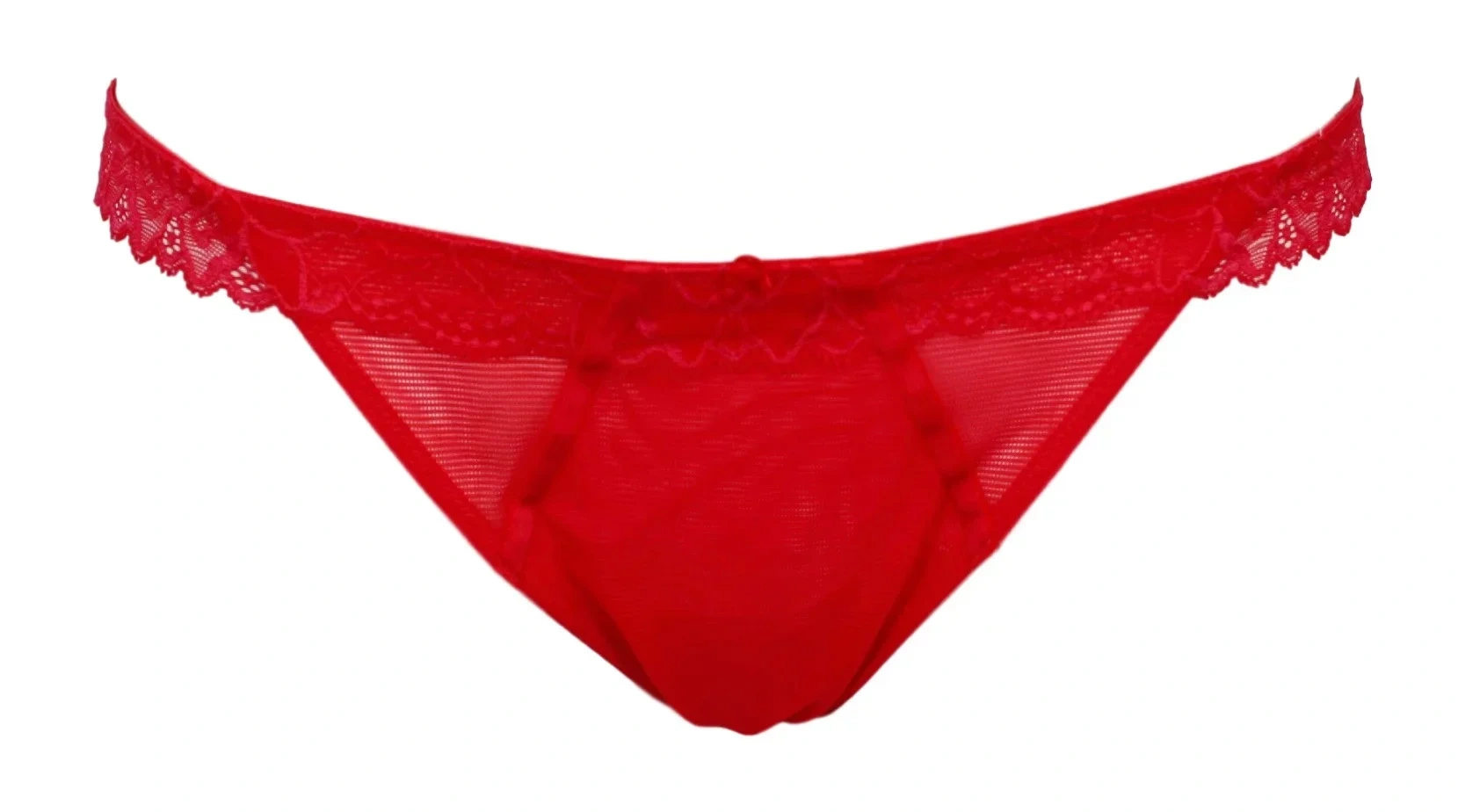 Koronkowe stringi Armani - wykonany z certyfikowanego nylonu z recyklingu - ozdobiony kokardą i meda