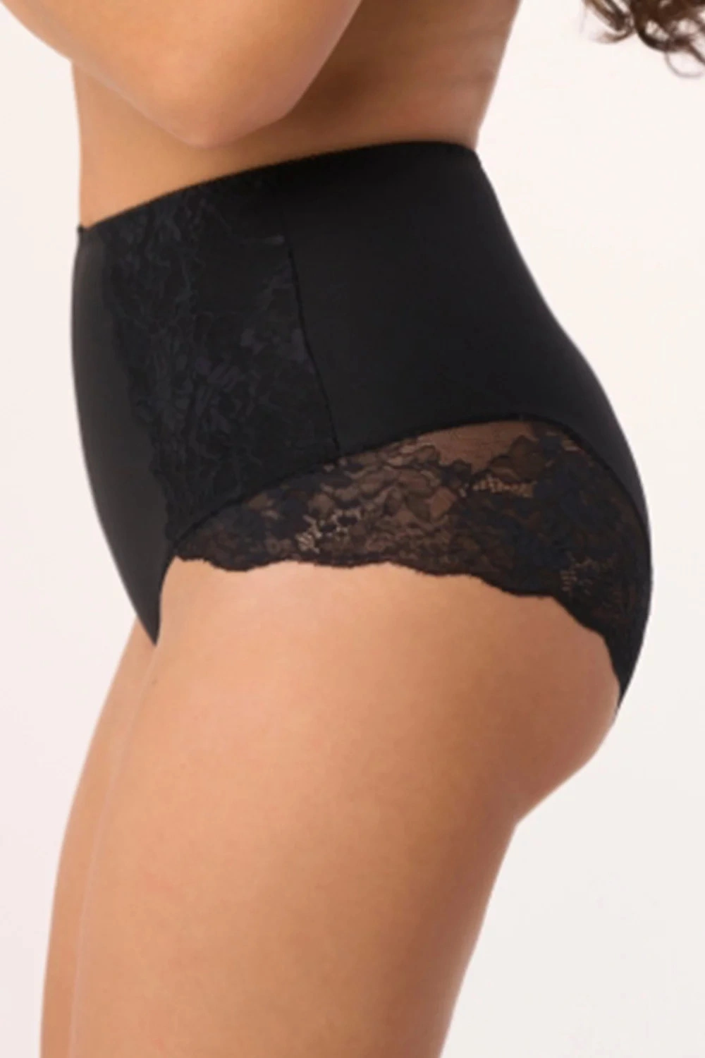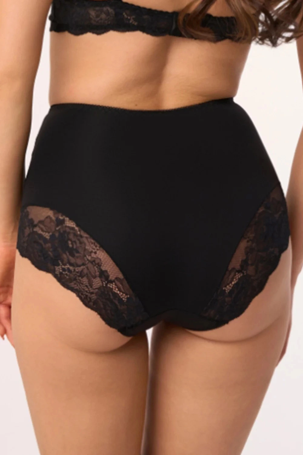 Bikini modelujące sylwetkę o pełnym i dopasowanym kroju. Krój zapewnia kontrolę nad sylwetką, a oddychający materiał pozwala czuć się świeżo i komfortowo. Boki i tył ozdobione charakterystycznym motywem kwiatowej koronki.