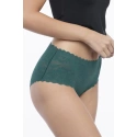 Majtki mają klasyczny wyższy krój i szersze biodra. Dzięki technologii Laser-Cut model nie wbija się pod obcisłe ubrania. Majtki mają wszytą w kroku bawełnianą podpaskę higieniczną.