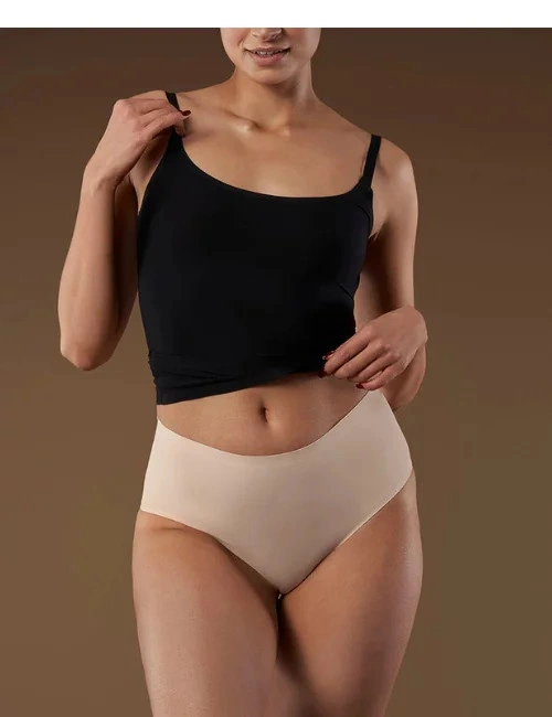 Beżowe figi damskie Brasil Maxi marki Julimex zostały wykonane w technologii bezszwowej Julimex Invisible Line®. Wykonane są z miękkiego i delikatnego materiału, a także posiadają higieniczną bawełnianą wkładkę, aby zapewnić maksymalny komfort.