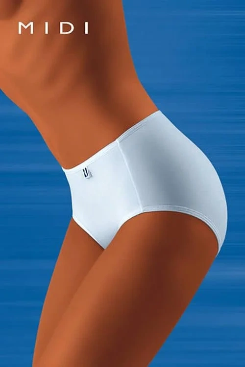 Figi damskie z gładkiej bawełny Wolbar Tahoo Midi +. Damskie bezszwowe majtki midi są wykonane z wysokiej jakości materiału, który jest wygodny na ciele. Majtki mają częściowy krój bokserek i należą do tzw. funkcjonalna bielizna.