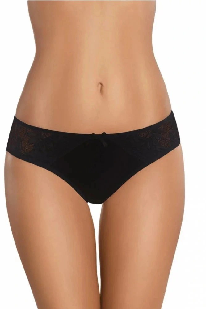 Figi damskie - niski stan, wykonane z wysokiej jakości bawełny z dodatkiem 5% elastanu, z przodu koronkowy haft z kwiatowym wzorem.