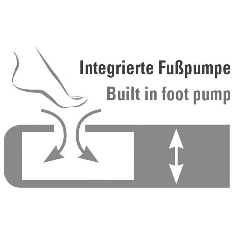 Poliestrowy, jednoosobowy materac turystyczny o średniej wielkości z integrowaną pompką.