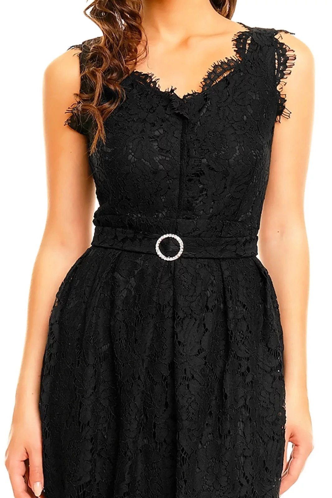 Mayaadi Deluxe koronkowa suknia wieczorowa i balowa, w komplecie z paskiem z klamrą. Sukienka ma ukryty zamek błyskawiczny wszyty z tyłu i dekolt w szpic. Materiał jest elatyczny, patrz wymiary w poniższej tabeli. Sukienka jest bez rękawów. Ten model sukienki może być używany uniwersalnie do każdego rodzaju towarzystwa, formalnego lub nieformalnego, do teatru, na bale, bankiety, uroczystości, uroczysty lunch lub kolację, przyjęcie urodzinowe lub romantyczną randkę z przyjacielem lub mężem.sukienka jest elastyczna i wygodna w noszeniu, wykonana z przyjemnego w dotyku materiału.