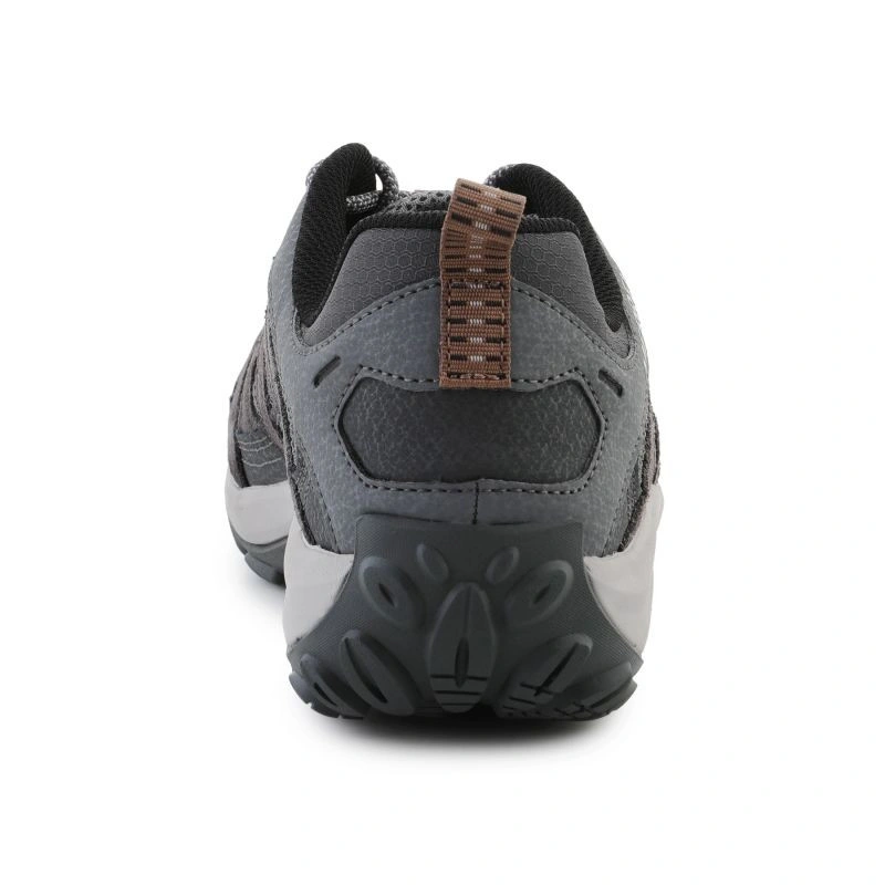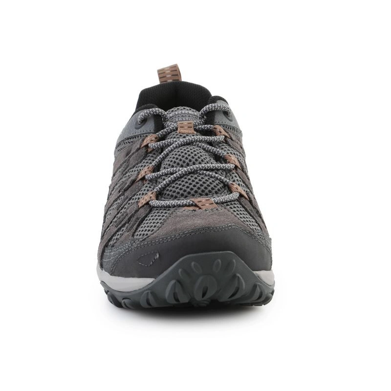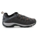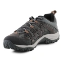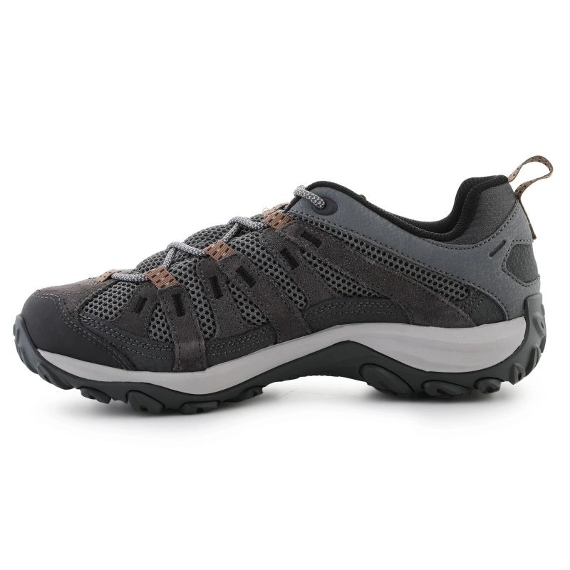 Merrell Alverstone 2 J037177 Granite to męskie buty trekkingowe przeznaczone do wędrówek w cieplejszych i suchych warunkach. Cholewka wykonana jest z połączenia zamszu oraz przewiewnej siateczki, co gwarantuje trwałość i doskonałą wentylację. Wyściółka tekstylna zwiększa komfort, a wkładka i podeszwa środkowa z pianki EVA odpowiadają za amortyzację podczas długich tras. Gumowa podeszwa z agresywnym bieżnikiem zapewnia stabilność i przyczepność na zróżnicowanych nawierzchniach – od kamieni, przez lasy, aż po lekkie błoto. Wzmocniony nosek i pięta podnoszą ochronę, a język typu bellows chroni wnętrze buta przed kamieniami i zanieczyszczeniami.