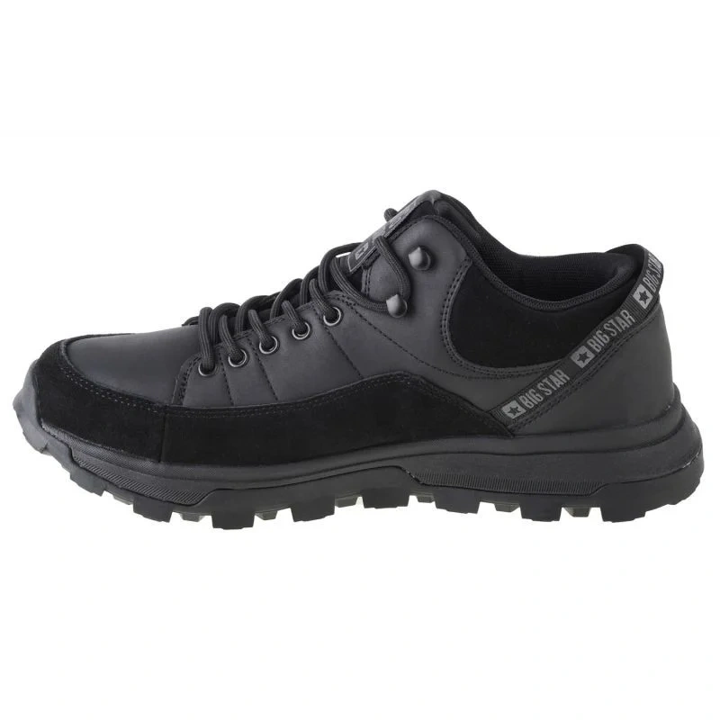 Właściwości: Męskie buty trekkingowe Big Star. Niski, sznurowany fason. Gumowa podeszwa z głębokim