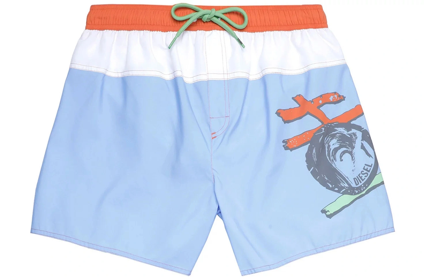 Spodenki kąpielowe Diesel "Reef". Ta para zapinana jest na sznurki i ma elastyczny pas, wielokoloro