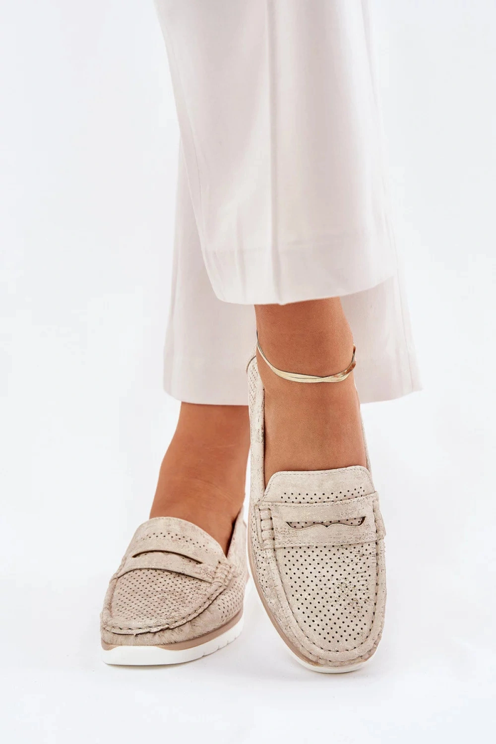 Damskie loafersy ze skóry ekologicznej, które łączą w sobie lekkość i wygodę. Osadzone na delikatnej platformie, subtelnie podwyższają, a zaokrąglony nosek dodaje kobiecego uroku. Skórzana wkładka zapewnia komfort przez cały dzień. Idealne na co dzień, loafersy te będą świetnym wyborem do wielu stylizacji, łącząc elegancję z funkcjonalnością.