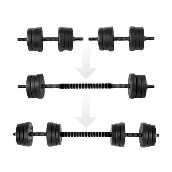 Spokey PONDUS 20: dvě nakládací činky a obouruční činka v jedné sadě Multifunkční nakládací sada POczytaj więcej