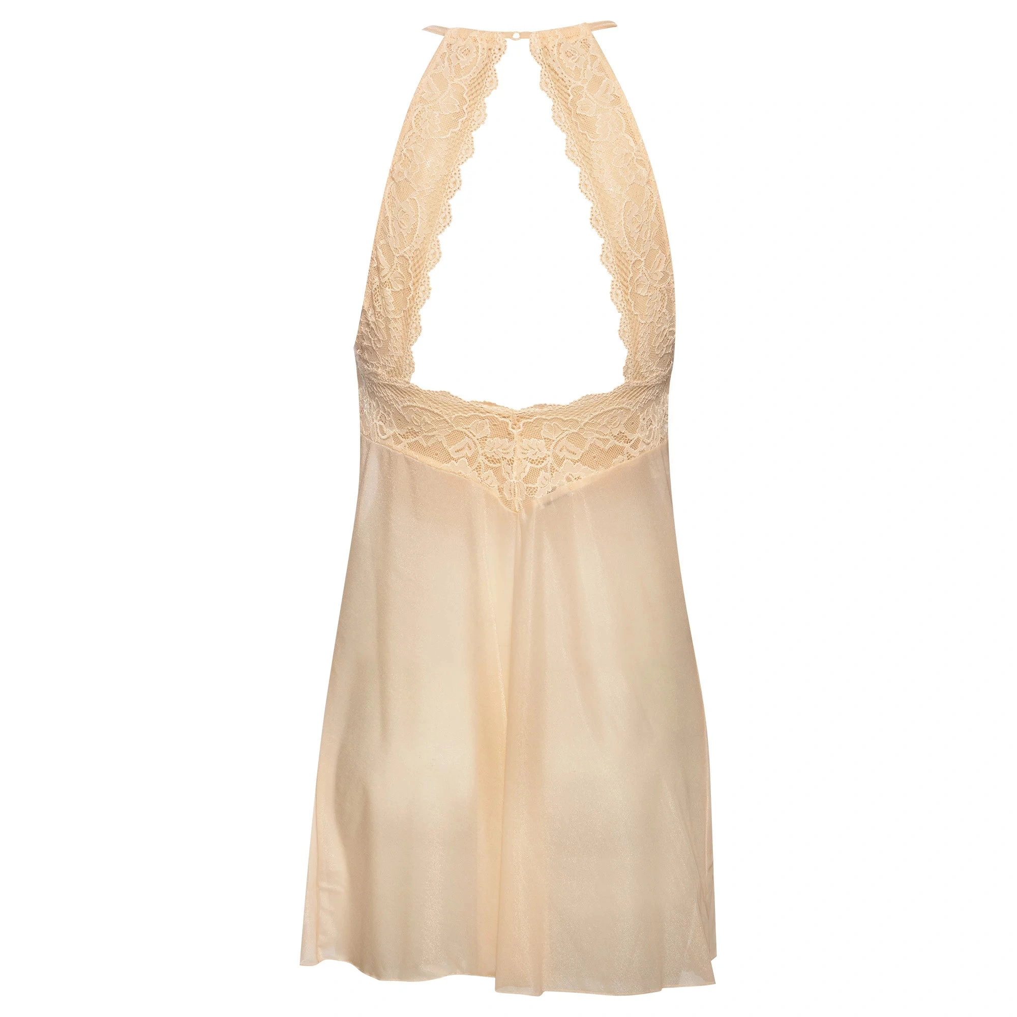 Tył koszulki jest również ozdobiony koronką, która dodaje miękkości i romantyzmu całemu projektowi. Materiał składający się w 85% z poliamidu i 15% z elastanu gwarantuje komfort i przyjemne uczucie na skórze przez całą noc.