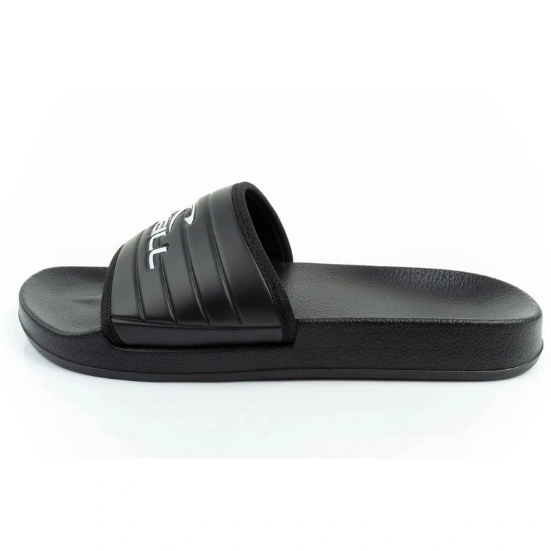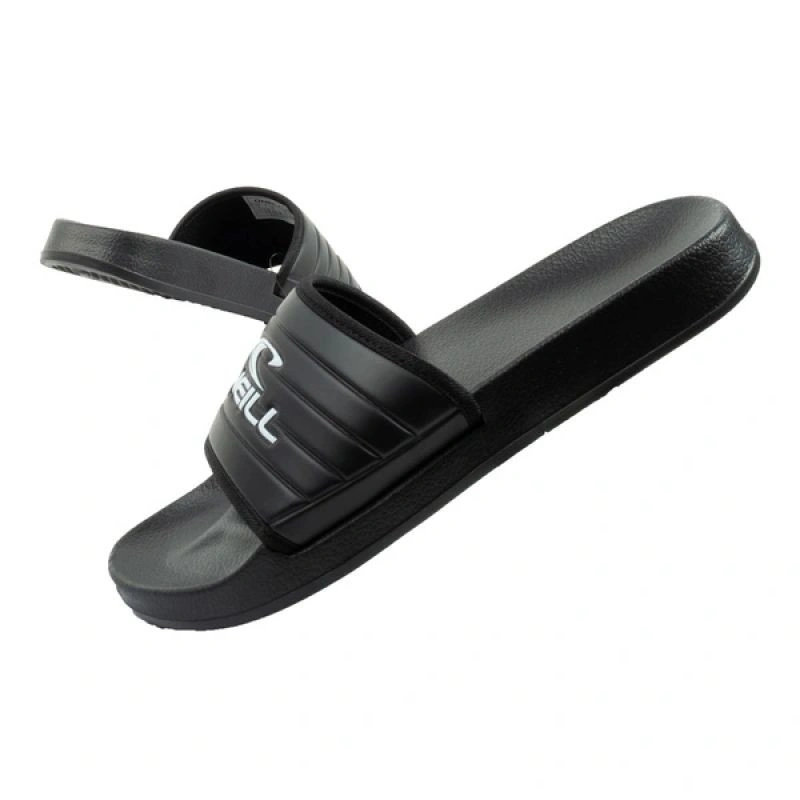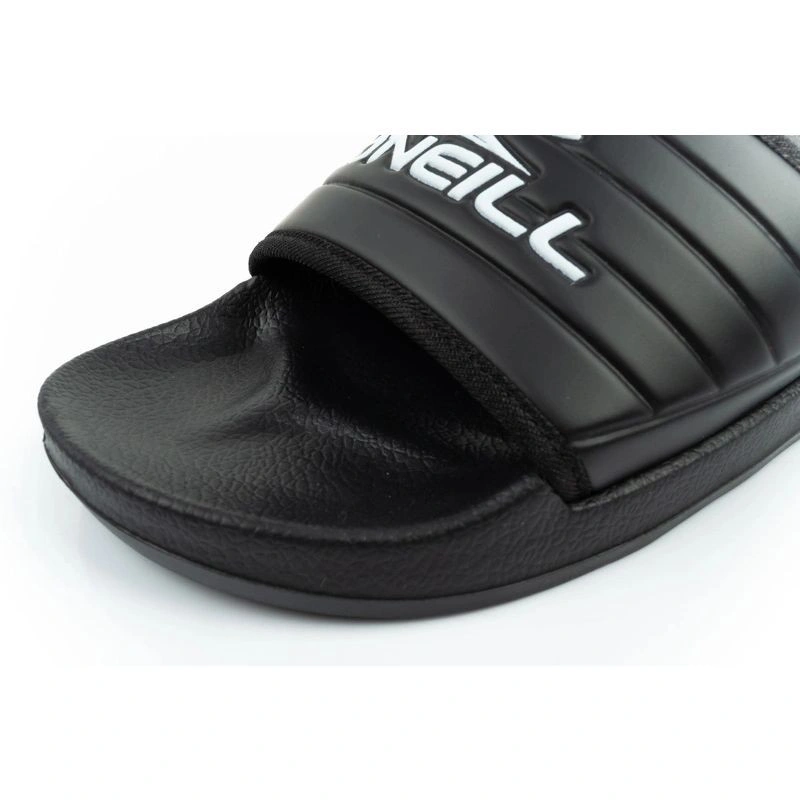 Modne męskie klapki marki O'neill. Szeroki pasek z wyraźnym logo nadaje im sportowego charakteru i podkreśla markowy wygląd. Wykonane są z lekkiego materiału, dzięki czemu zapewniają komfort noszenia na co dzień - zarówno na basen, plażę, jak i do chodzenia po domu. Najmodniejsza kolorystyka w tym sezonie sprawi, że zawsze będziesz wyglądać wyjątkowo.O'neill klapki sportowe męskie Kelso Slider wygodne laczki czarne