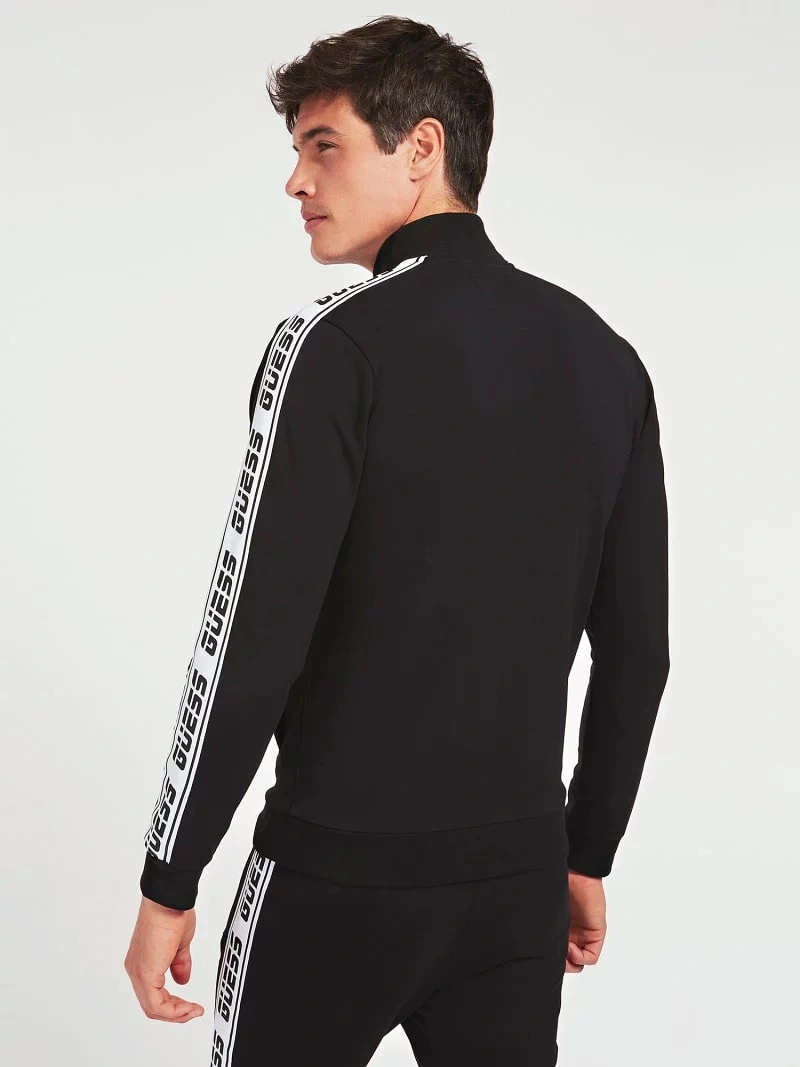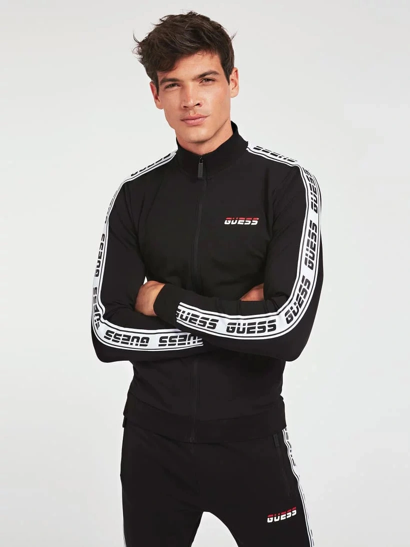 - ozdobna czarno-biała lamówka na rękawach, z napisem Guess