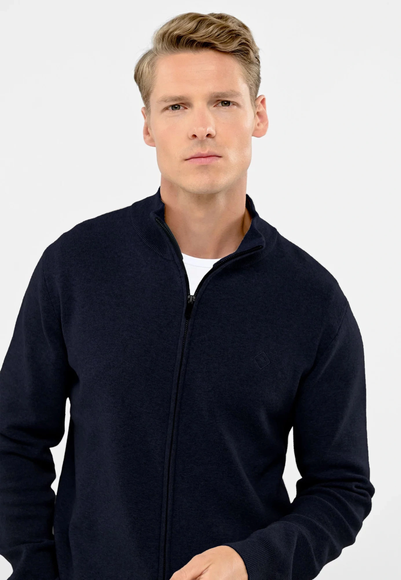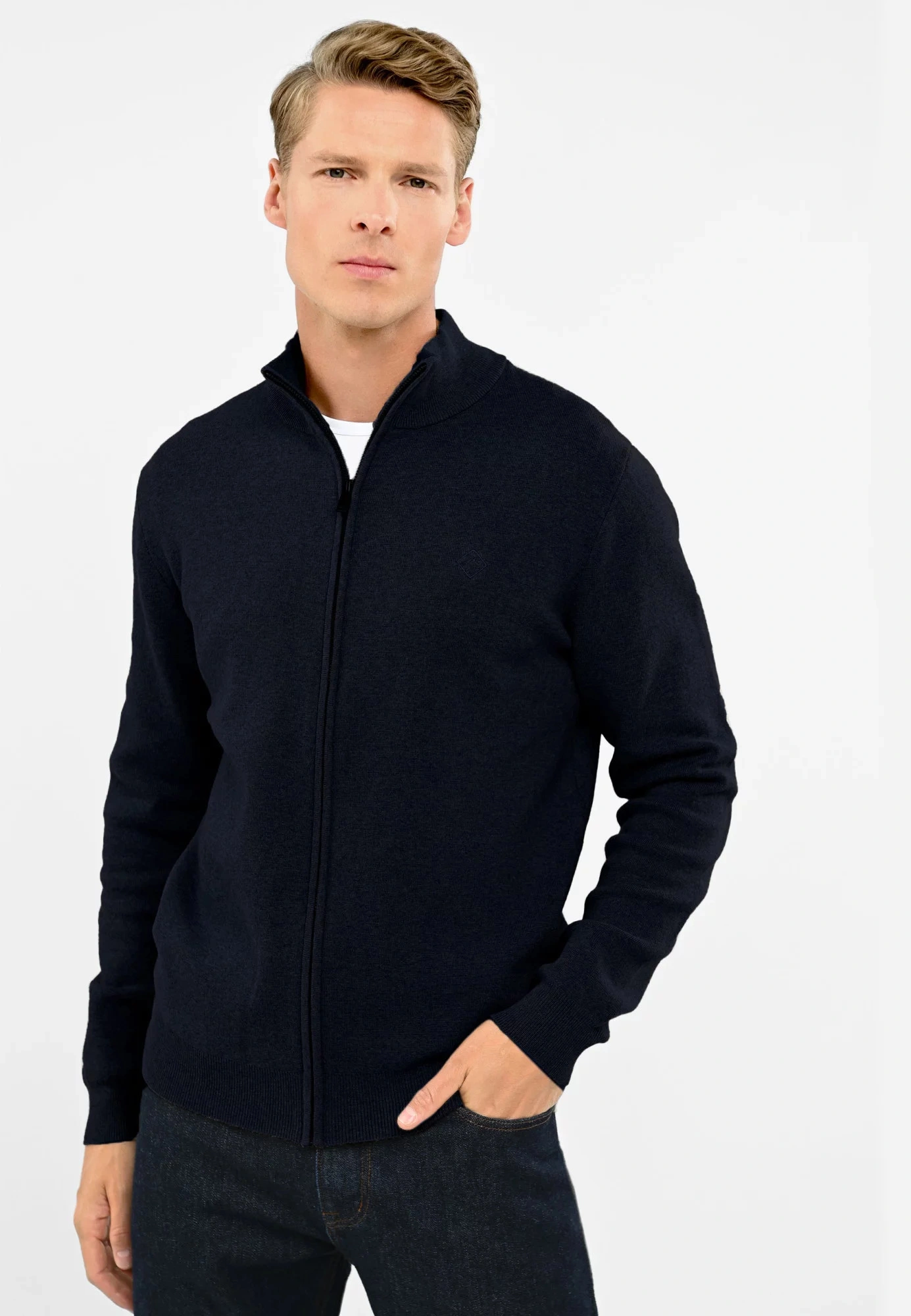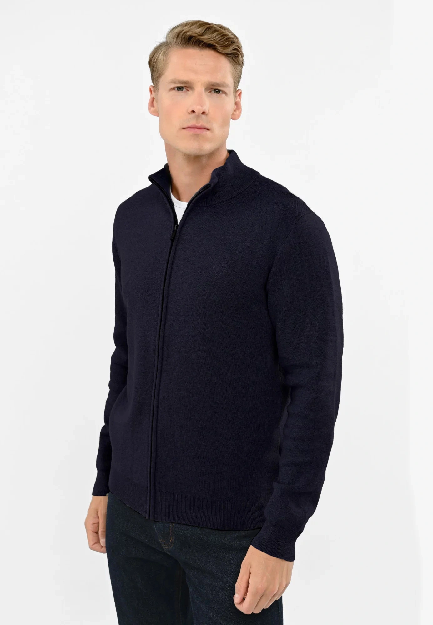 80% bawełna, 20% poliamidWskazówki pielęgnacyjne: pranie: prać w pralce w temperaturze 30°CPłeć: mężczyznaKolekcja: wiosna/lato/jesień/zimaKolor: granatowyKategoria: odzież męska | swetry