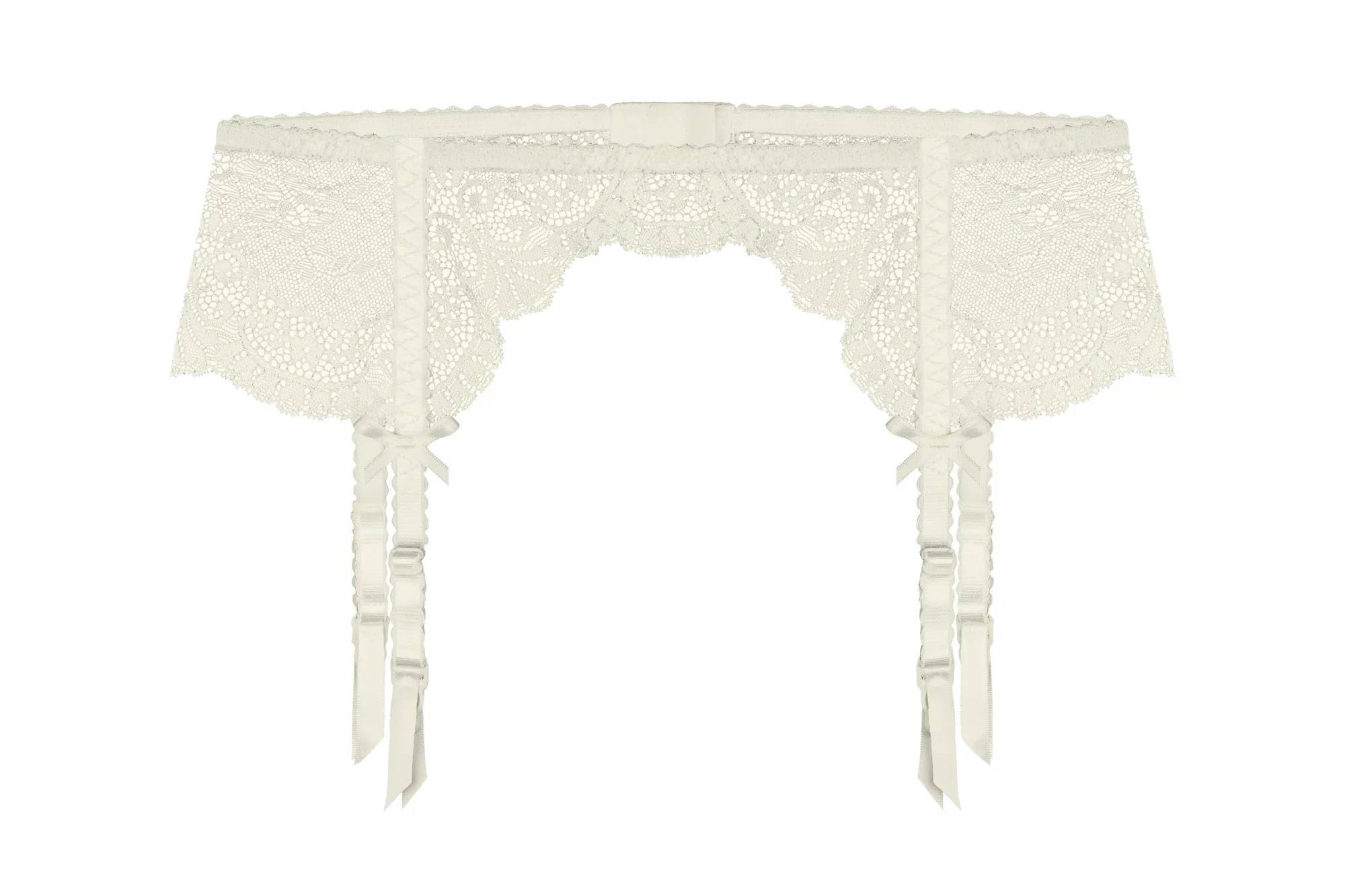 Podvazkový pás 032 Ewana - bílá barva - elegantní provedení - z jemného tylu a vyšívané krajky - dél
