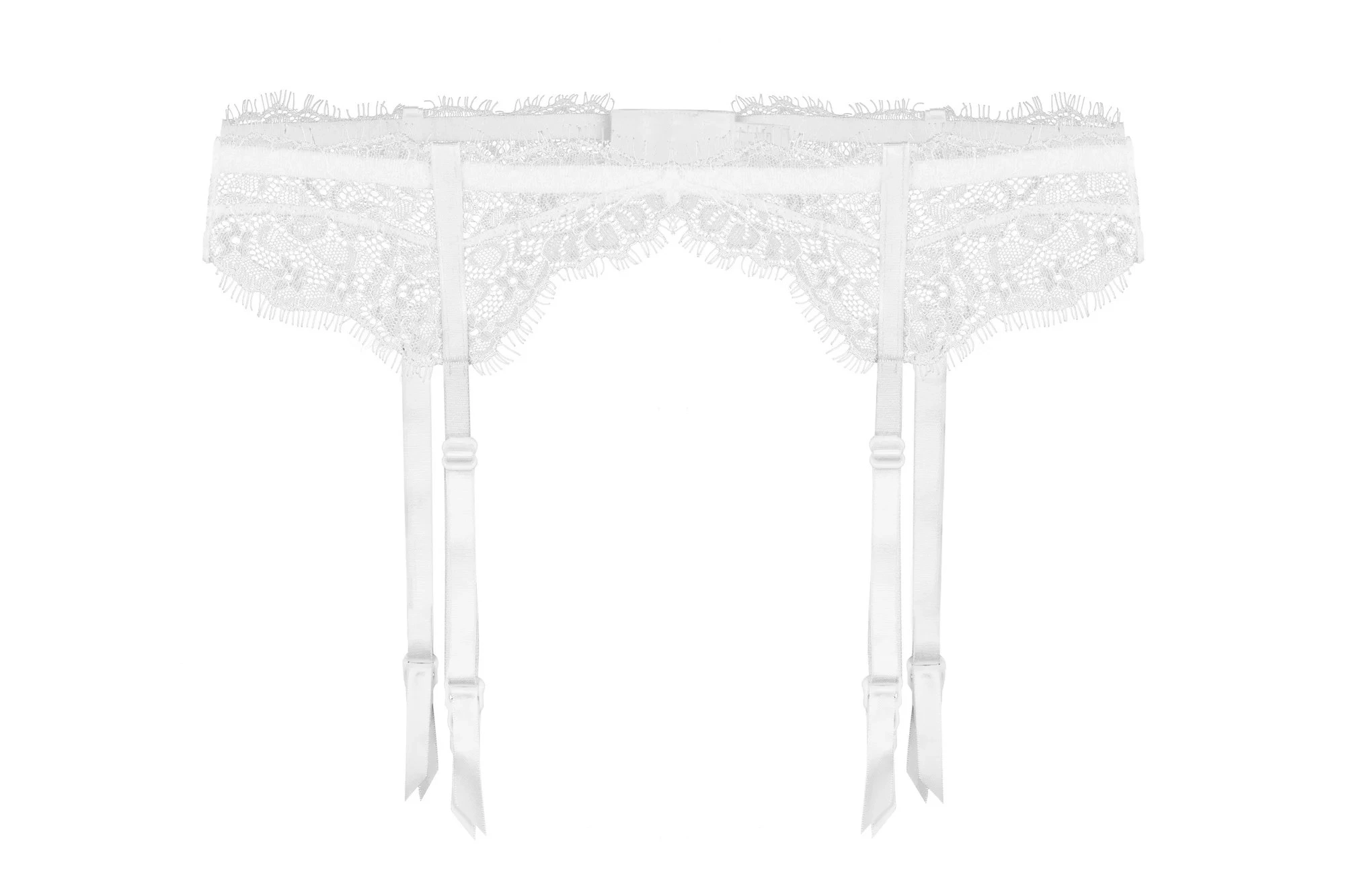 Koronkowy pas do pończoch z motywem kwiatowym. Paski do pończoch mają regulację. Krawędzie koronki są wykończone cienkimi nićmi. Piękne połączenie romansu z odrobiną pikanterii.