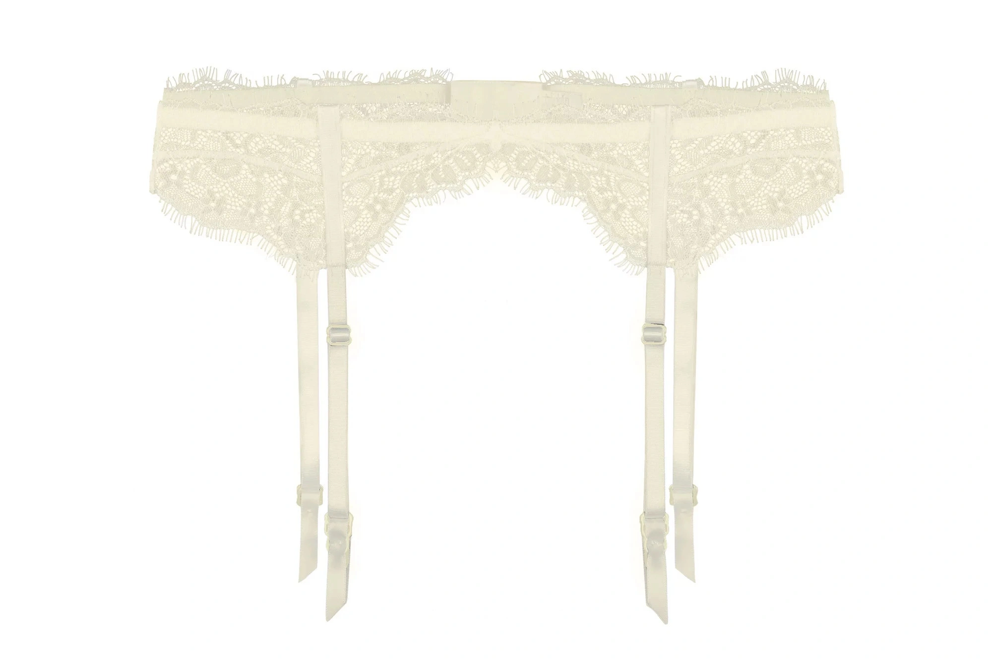 Koronkowy pas do pończoch z motywem kwiatowym. Paski do pończoch mają regulację. Krawędzie koronki są wykończone cienkimi nićmi. Piękne połączenie romansu z odrobiną pikanterii.