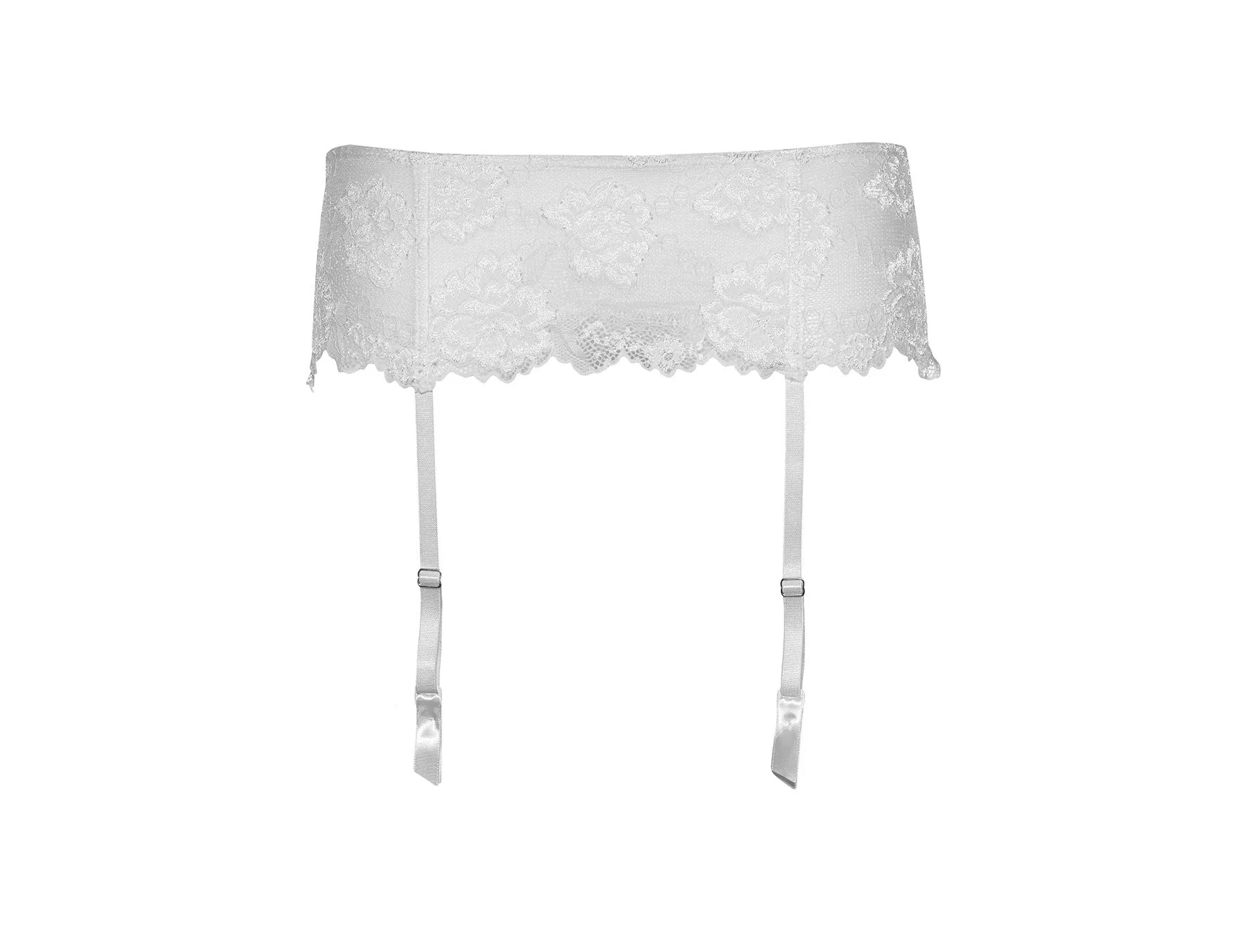Fantazyjny pas do pończoch z szerokiej koronki z dwustopniowym zapięciem na haftki i pętelki, sznurk