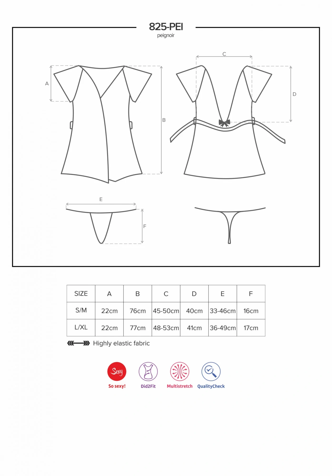 Peniuar Robe 825-PEI - Obsessive L/XL Niebieski