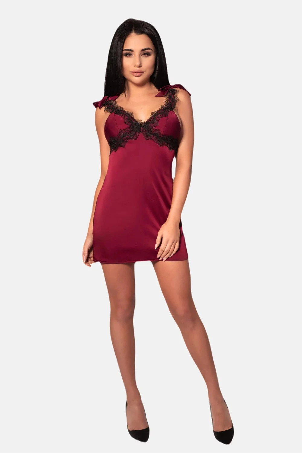 - satynowa koszula nocna w kolorze bordowym i wiśniowym