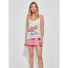 - szorty w jednolitym kolorze z nadrukiem Snoopy'ego i regulowanym paskiem z gumką i kokardką