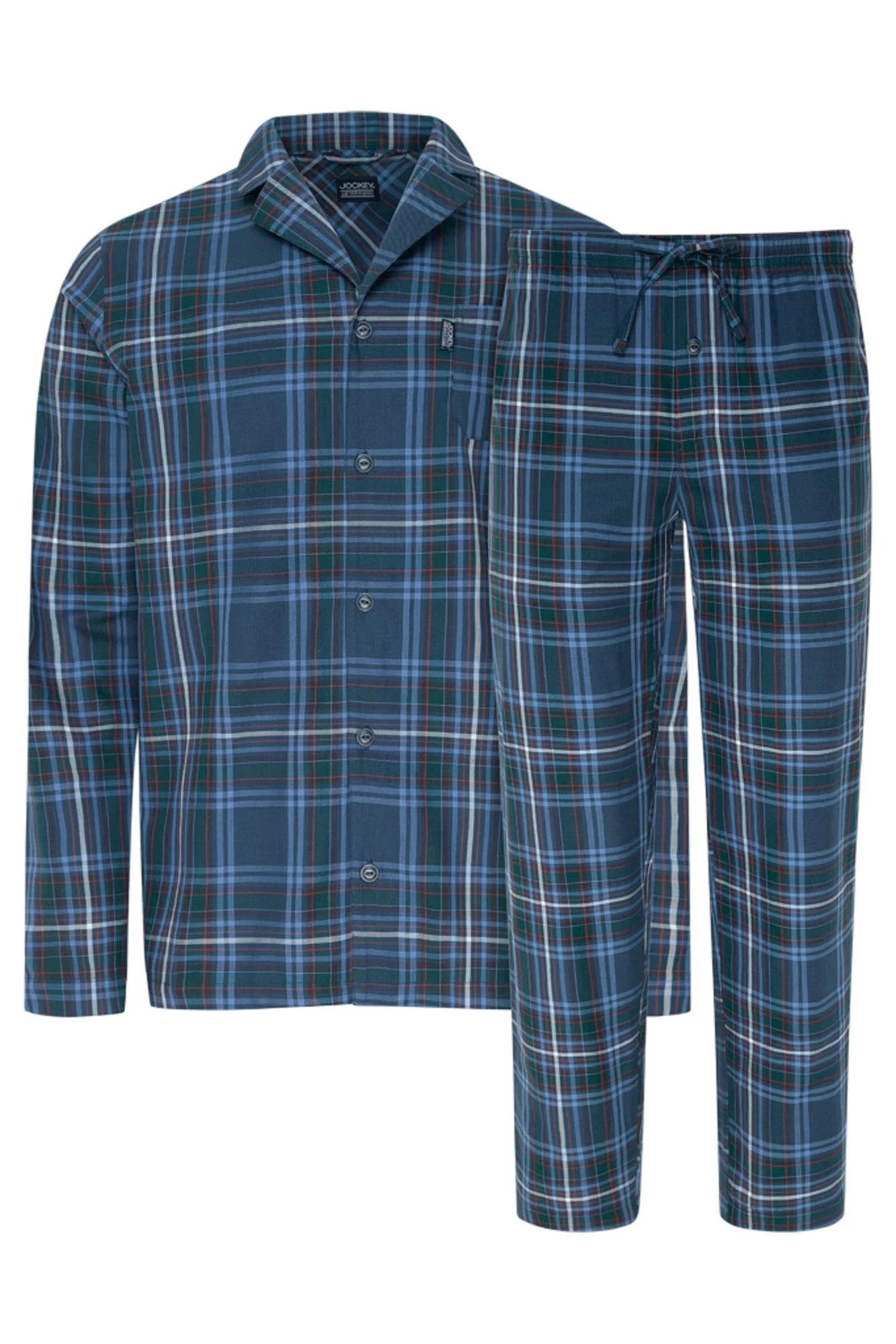 Męska piżama Jockey - spodnie mają szeroki elastyczny pas - koszula z długim rękawem - okrągły dek