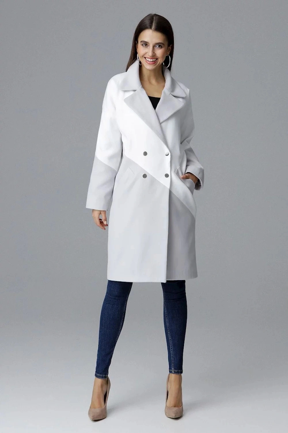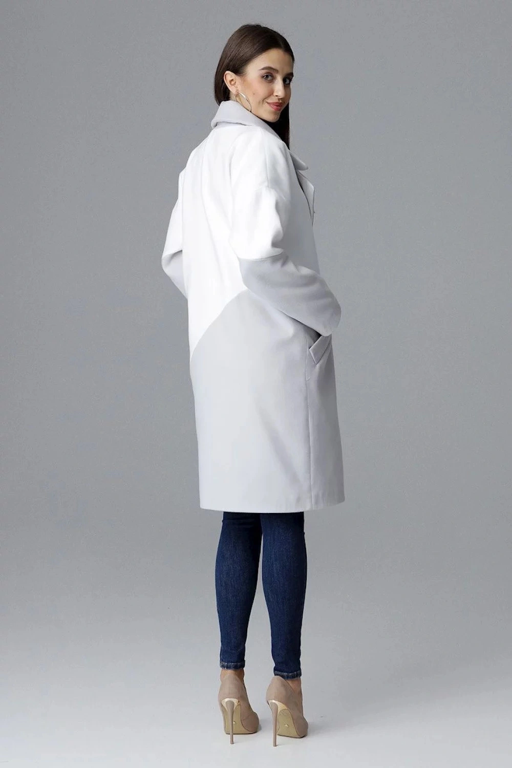 Płaszcz damski M626 - Figl szaro-biały 42/XL
