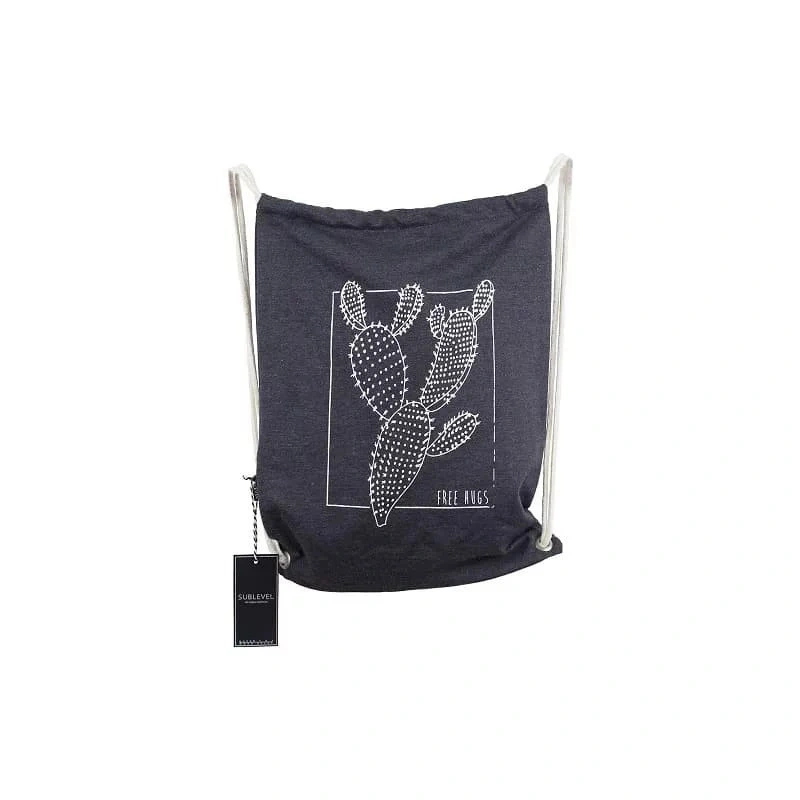 Płócienna torba od Sublevel - nadruk kaktusa - zapięcie na sznurek 60% poliester, 40% bawełna