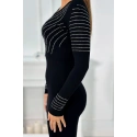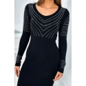 Jedinečné pletené šaty, které spojují pohodlí, styl a jemnou eleganci. Tyto černé šaty se stříbrným vzorem jsou perfektní volbou pro mnoho příležitostí. Šaty jsou vyrobeny z měkké tkaniny a zaručují pohodlí při nošení a dokonalé přizpůsobení postavě. Stříbrný vzor dodává nádech lesku a sofistikovanosti a dodává celému stylingu jedinečný charakter. Díky jednoduchému tvaru jsou šaty univerzální a snadno se upravují jak pro každodenní použití, tak pro formálnější události. Tyto šaty jsou skvělou volbou pro ženy, které si cení pohodlí, ale zároveň chtějí vypadat módně a elegantně. Díky černé barvě a stříbrnému vzoru ji snadno sladíte k vašemu individuálnímu stylu a vytvoříte jedinečné, módní kombinace. Buďte připraveni spojit pohodlí a styl v našich černých šatech se stříbrným vzorem. Velikost je univerzální a bude vhodná pro ženy, které nosí velikost S, M nebo L.