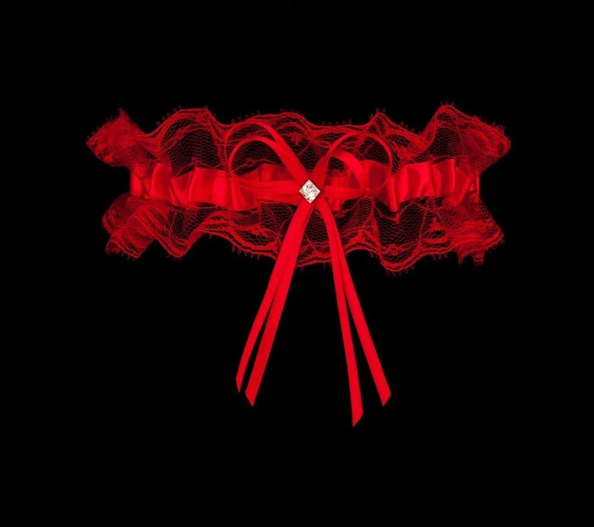 Červený podvazek Andora jemně podtrhne jedinečnost vašeho plesu. Jedná se o nápadný model z červenéh