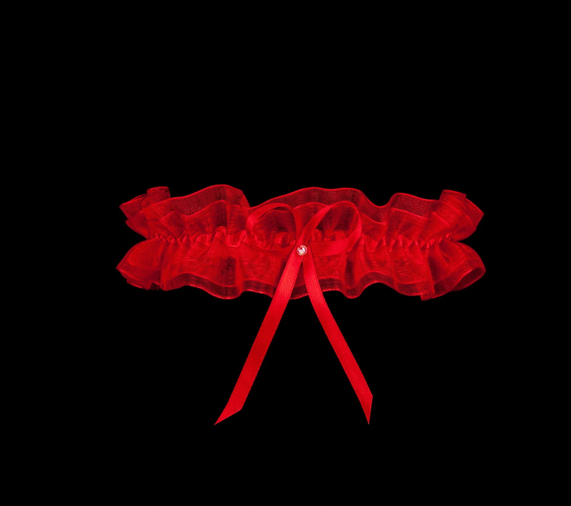 Červený podvazek Andora jemně podtrhne jedinečnost vašeho plesu. Jedná se o nápadný model z červenéh