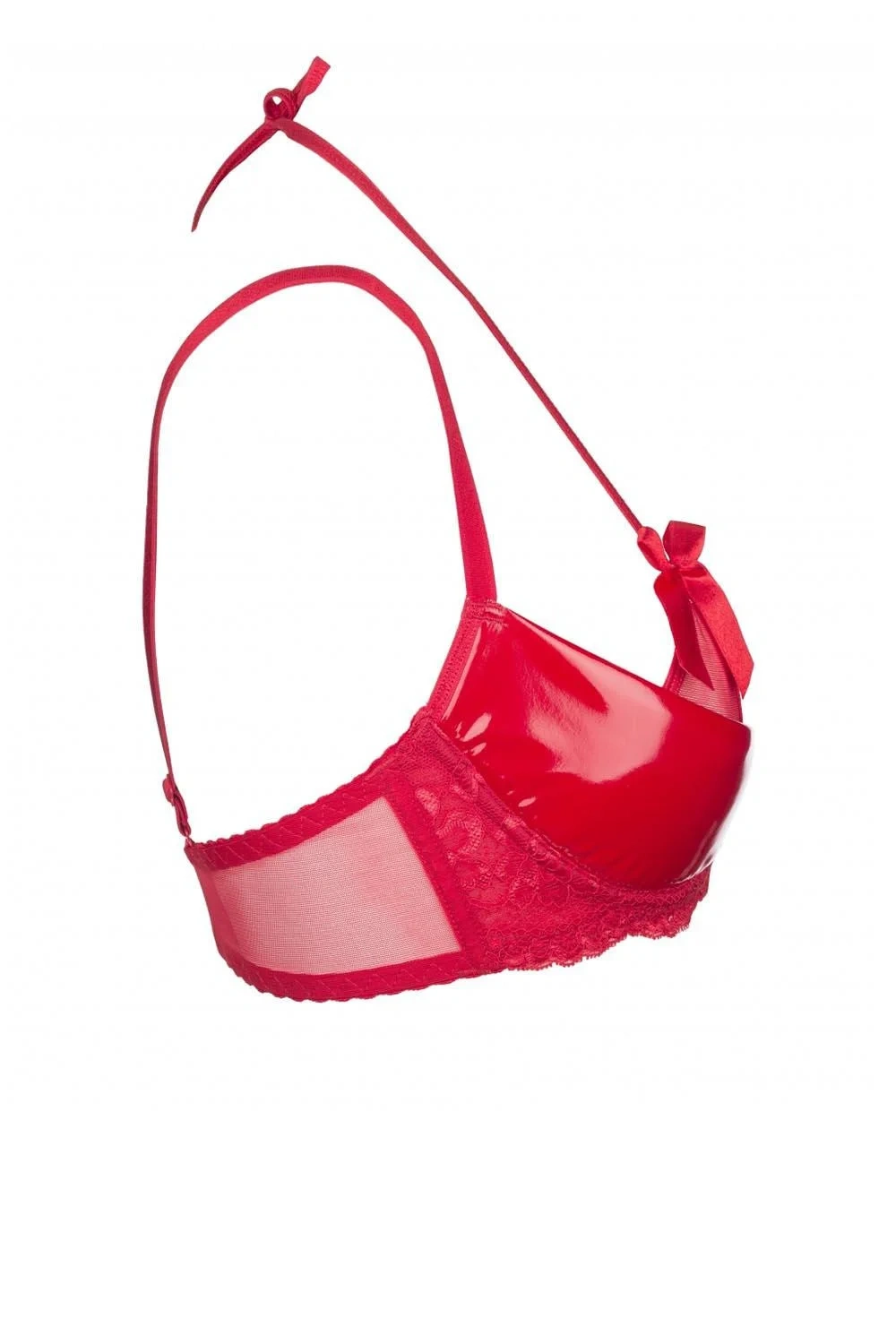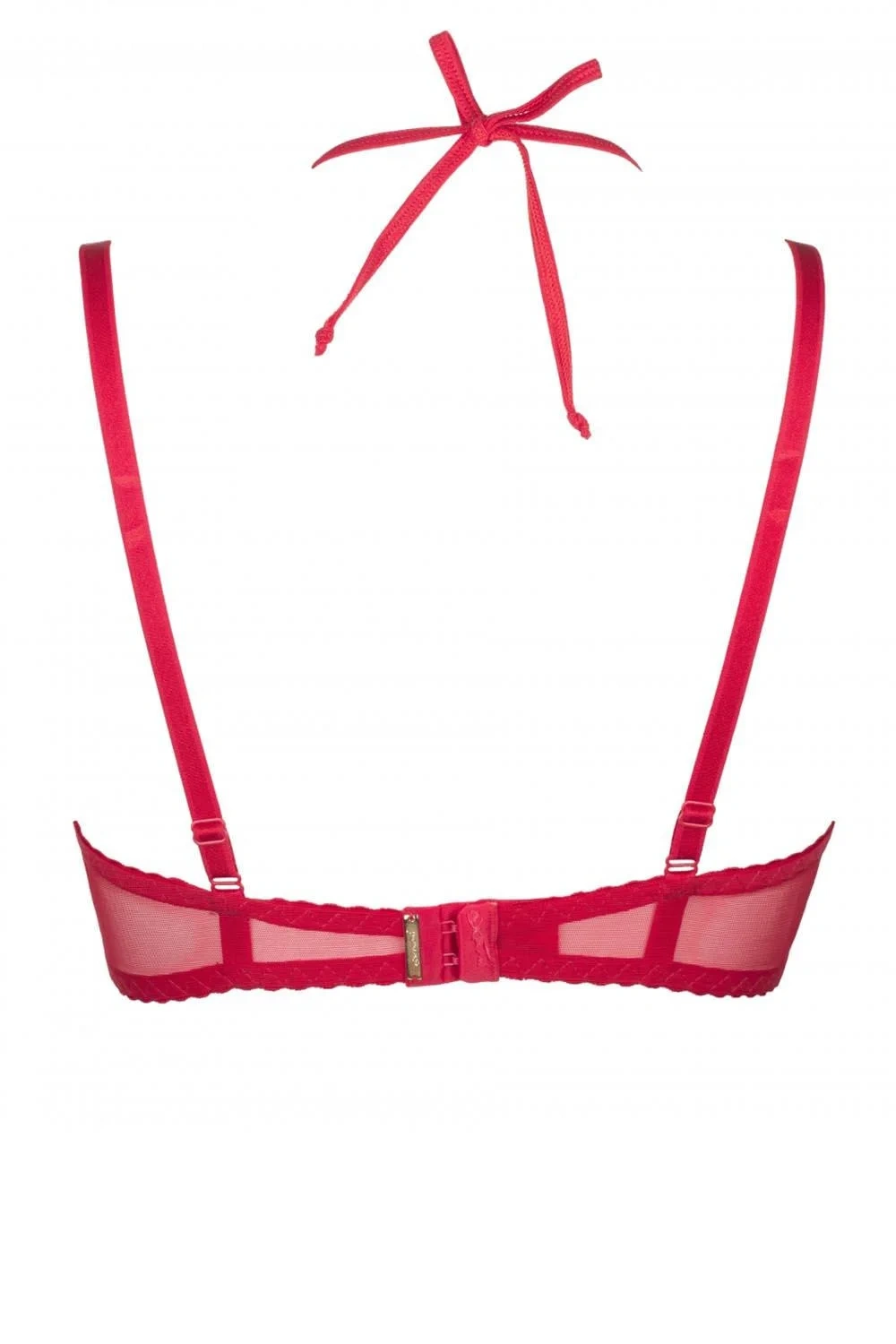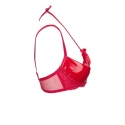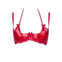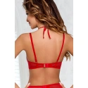 Czerwony biustonosz Rouge polo, który emanuje namiętnym seksapilem, doskonale podkreśli piękno Twojego ciała i przyciągnie pożądliwe spojrzenia. Nikt z was nie może oderwać ode mnie wzroku! Biustonosz ma błyszczące miseczki. Mostek (środek biustonosza) i boki wykonane są z delikatnego tiulu. Tył wykonany jest z delikatnego tiulu. Figlarne kokardki dodają modelowi urody. Model ma boczne wiązanie i wiązanie na szyi. Drugi pasek można regulować, ale nie można go odłączyć. Zapięcie na dwie haftki z trzystopniową możliwością regulacji rozmiaru obwodu. Zestaw można stworzyć razem ze stringami i pasem do pończoch Rouge.