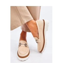 Damskie loafersy na wysokiej podeszwie. Model posiada elegancki fason, który w połączeniu ze stylowymi zdobieniami prezentuje się niezwykle gustownie. To najlepszy wybór dla miłośniczek elegancji i wygody! Materiał zewnętrzny - eko zamsz (kolor czarny, beżowy)/ eko skóra (kolor biały).