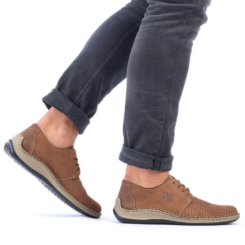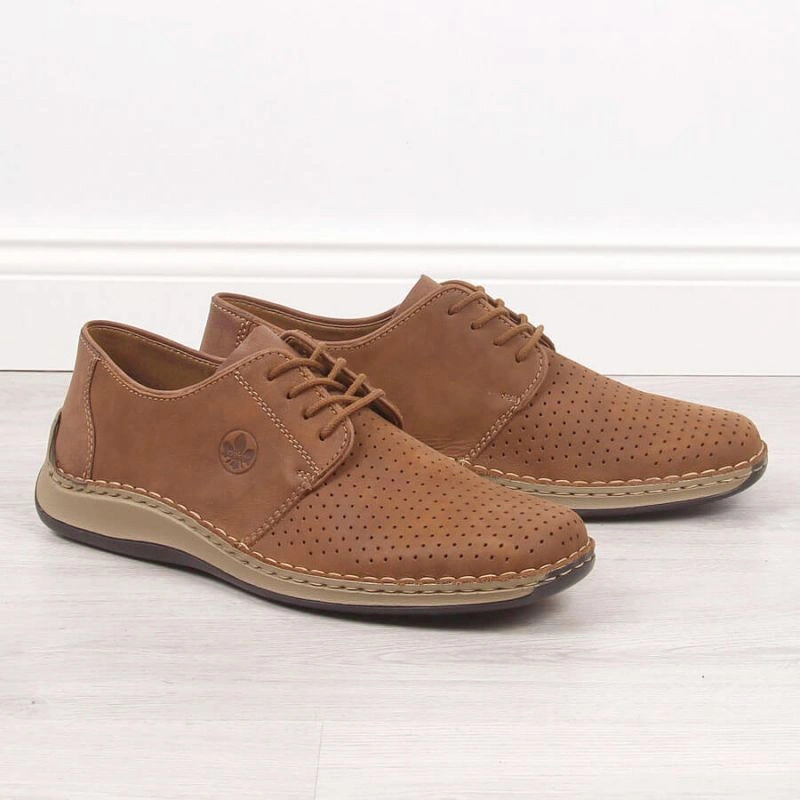 Półbuty skórzane ażurowe Rieker M RKR528 brązowe