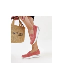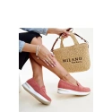 Różowe półbuty Muna to idealny wybór na lato. Perforowany wzór i czarny kolor sprawiają, że są one hitem wśród letniego obuwia. Wykonane z wysokiej jakości gumy, nie tylko wyglądają elegancko, ale są również bardzo wygodne. Niska konstrukcja i zaokrąglony nosek sprawiają, że świetnie nadają się na upalne dni. Dodatkowo, ich wsuwana konstrukcja ułatwia zakładanie i zdejmowanie. Te nowoczesne buty dodadzą elegancji każdemu strojowi, pozwalając Ci czuć się stylowo i komfortowo przez cały sezon. Materiał wierzchni: skóra ekologiczna, Podszewka: brak, Materiał podeszwy: guma, Kolor podeszwy: beżowy, Zapięcie: wsuwane, Kolekcja: lato.