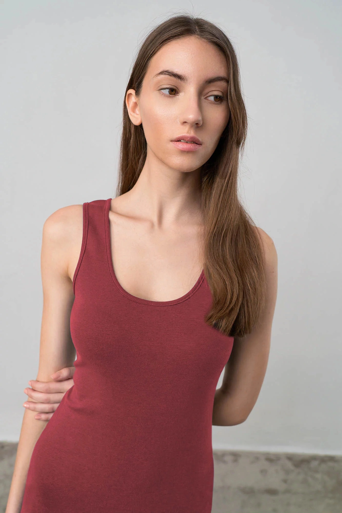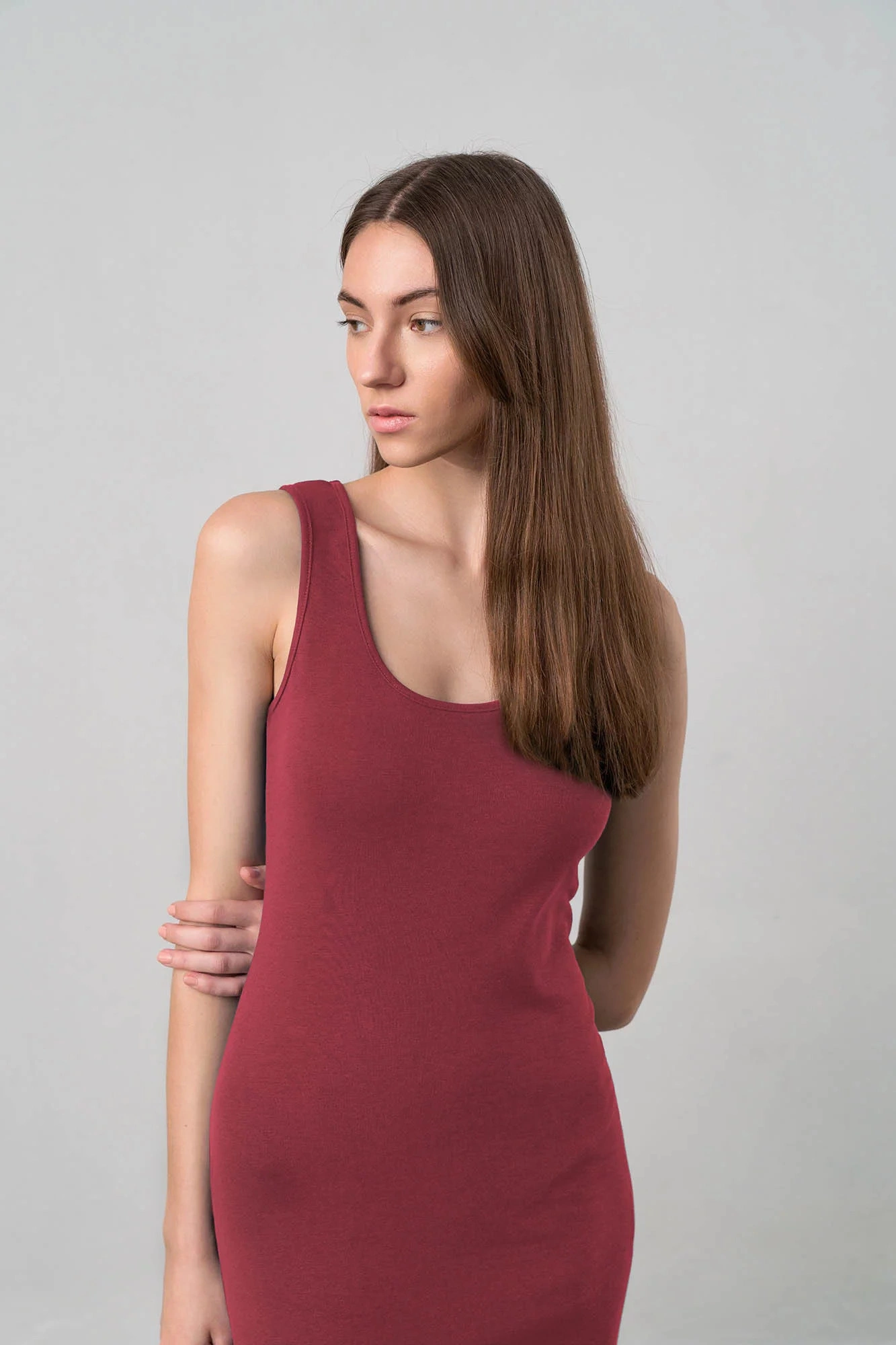 Prosta sukienka bez rękawów 70030 - Vamp bordowy L