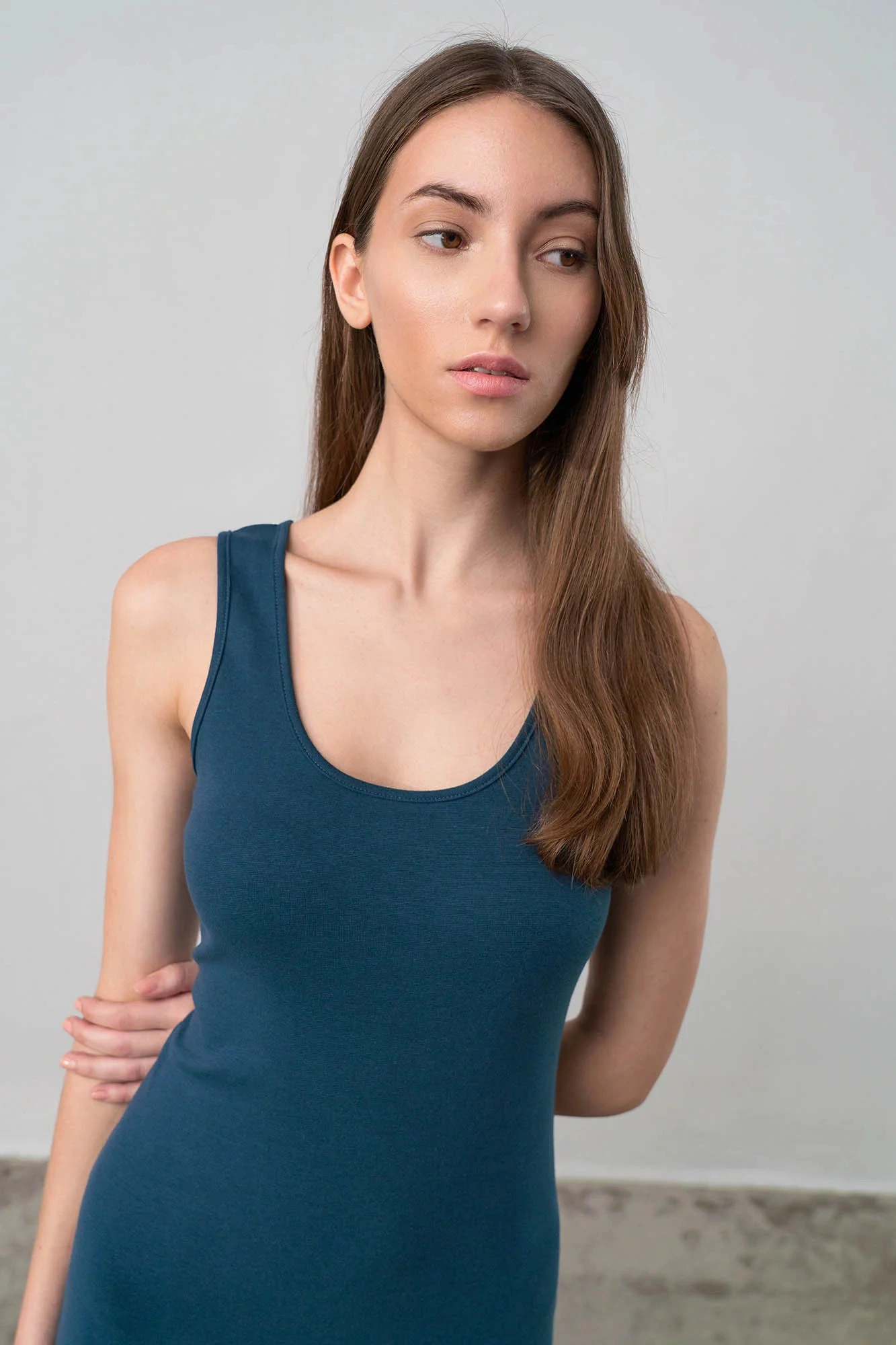 97% bawełna + 3% elastan Długość: 105 cm. Modelka ma na sobie: Wzrost modelki: 175 cm. Sukienka bez